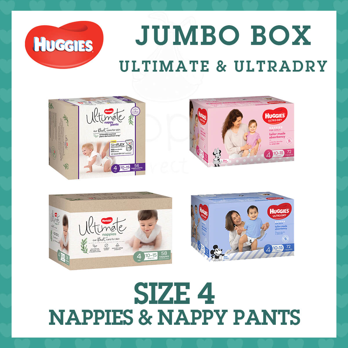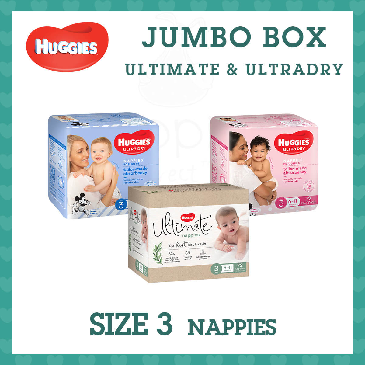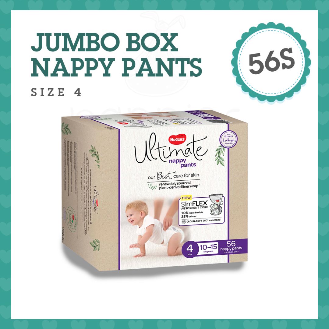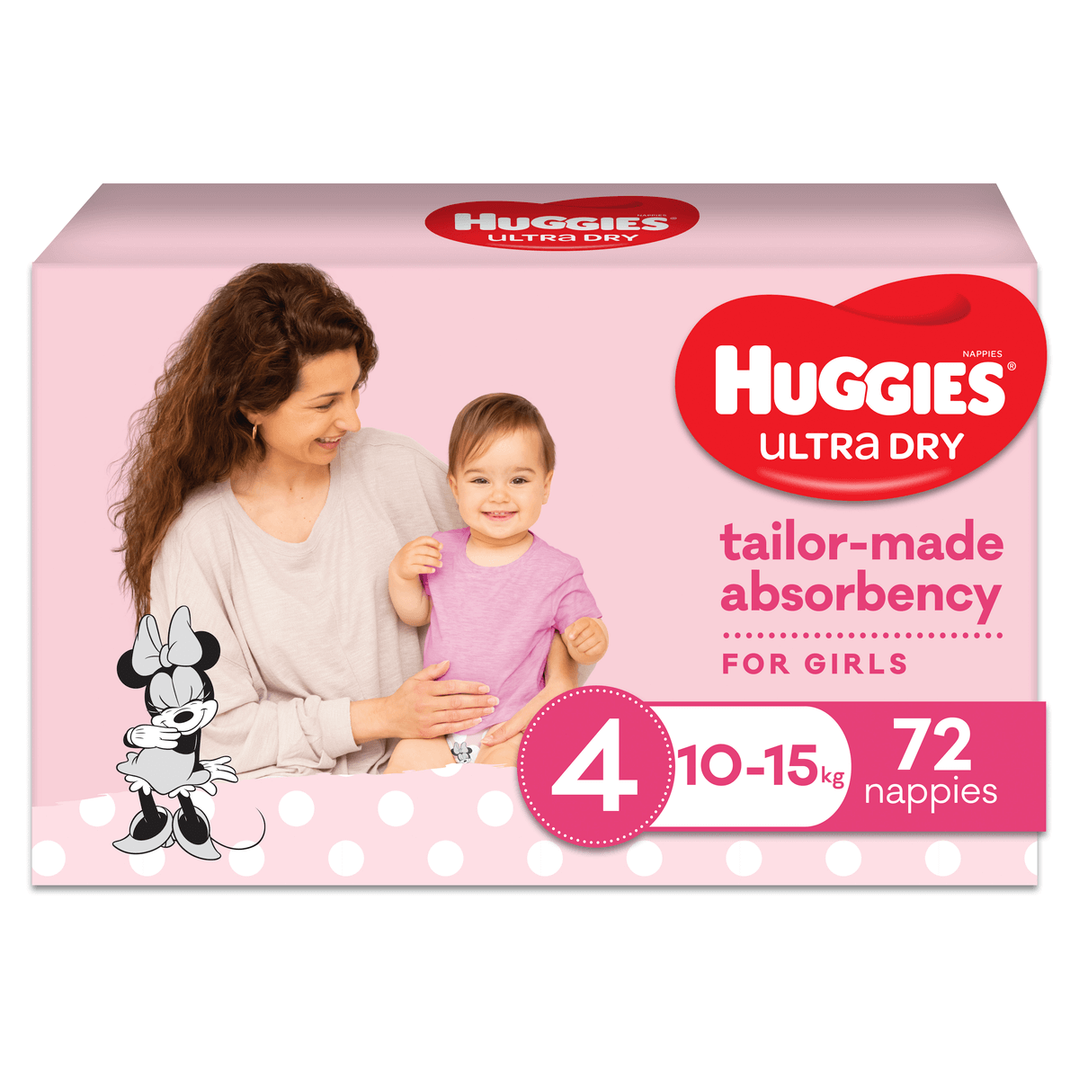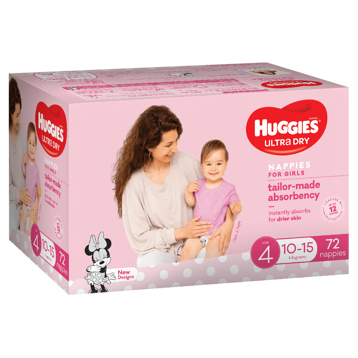 Huggies Ultra Dry nappies are available in four sizes: