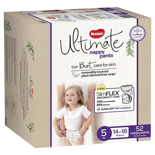 Clinically proven to help prevent nappy rash, Huggies Ultimate is our most breathable nappy and features Huggies’ Breathe Dry(R) Cover to allow air to circulate keeping baby cool and dry.