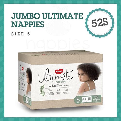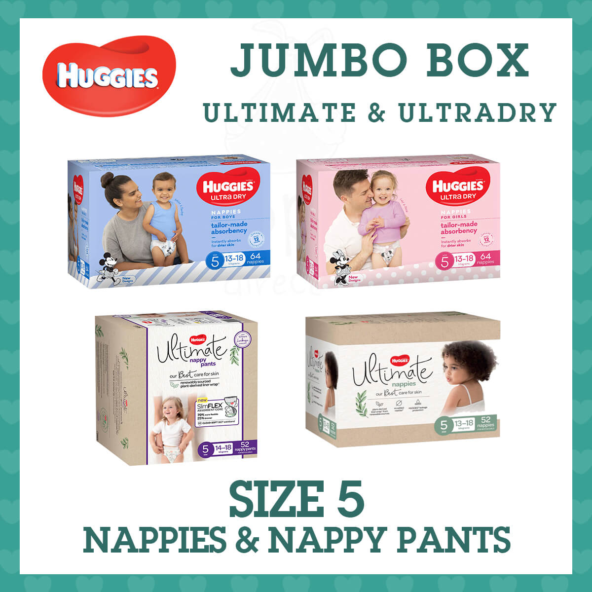 Huggies Ultimate Size 3 nappies are ideally sized for babies weighing between 6 and 11KG. Huggies Ultimate disposable nappy range is available in the following sizes; Size 1 Newborn (up to 5kg), Size 2 (4 - 8KG), Size 3 (6 - 11KG), Size 4 (10 - 15KG), and Size 5 (13 - 18KG). Please note packaging may vary.