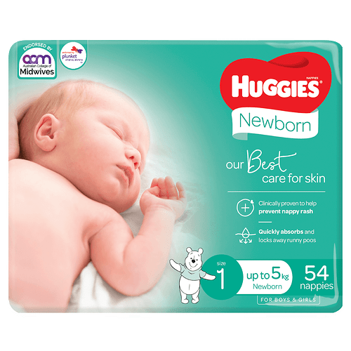 Australia’s No. 1 Newborn nappy with features specially designed for the comfort and protection of newborns. Huggies newborn nappies are clinically proven to help prevent nappy rash. Plunket endorses Huggies® Nappies and Huggies® Baby Wipes as the preferred choice for baby. Australia’s No. 1 Newborn nappy with features specially designed for the comfort and protection of newborns. Huggies newborn nappies are clinically proven to help prevent nappy rash.