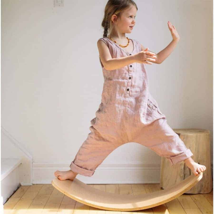 Kinderboards look deceptively simple. Developed for use in Waldorf early childhood classrooms they’re a simple but rather clever concept for developing a child’s balance, stimulating their vestibular system and helping them gain a deeper awareness of their body and body parts. However, as is often the case with many of the world’s most enduring toys things are never quite what they seem.