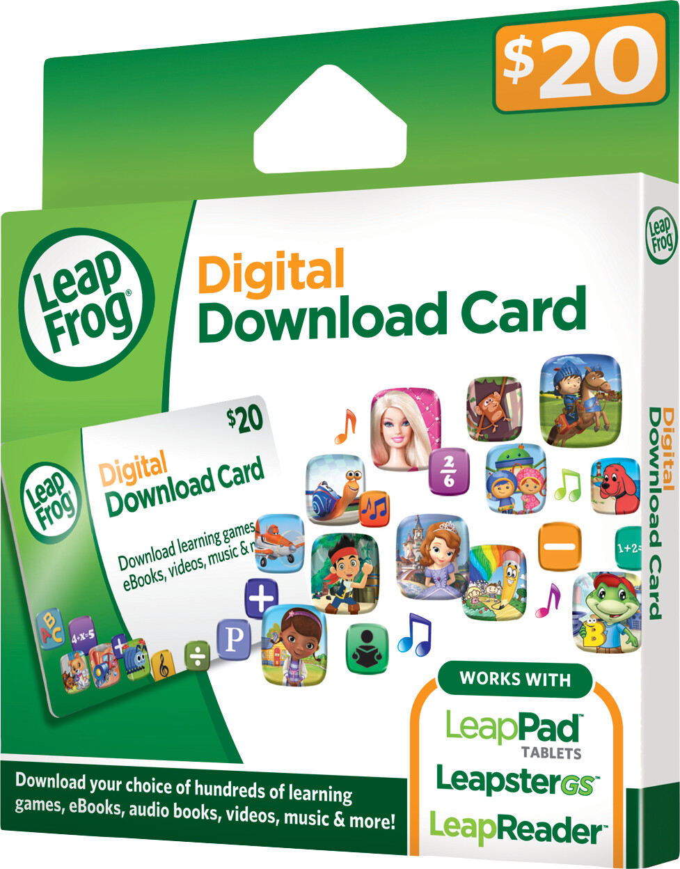 Leapfrog App Centre download cards lets you go online and choose from more than 150 learning apps from the LeapFrog App Centre.? Each app offers endless ways to play, like games, ultra e-books, videos, flash cards and more. Download to your Leapster Explorer handheld or LeapPad Explorer tablet and learn on the go.