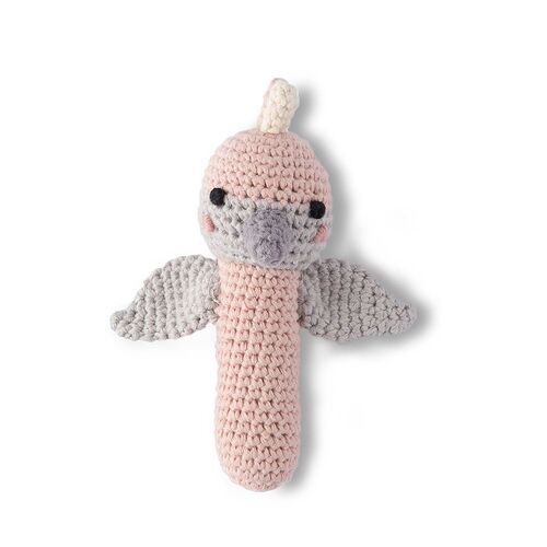 Composition: 100% hand crochet Cotton outer Polyester fill with small plastic rattle piece.