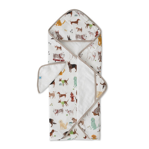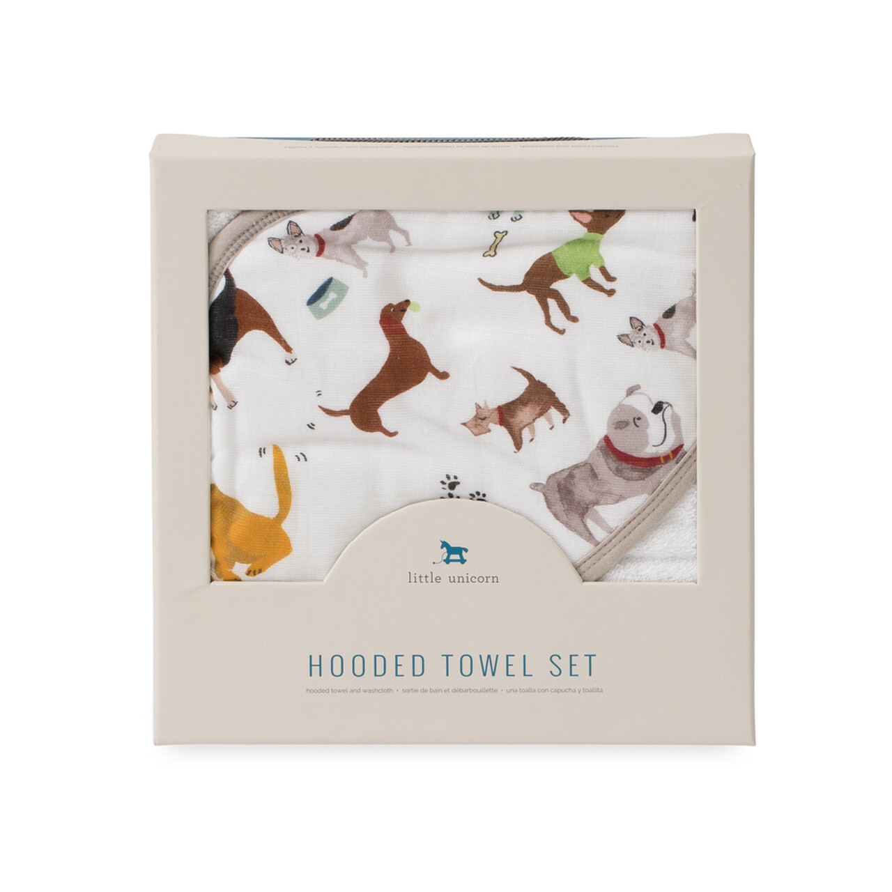Splash into bath time with a plush and absorbent hooded towel and washcloth set. Featuring a cozy hood and pockets for little hands, the hooded towel set is crafted with printed muslin on the outside and ultra-soft terry cloth on the inside.