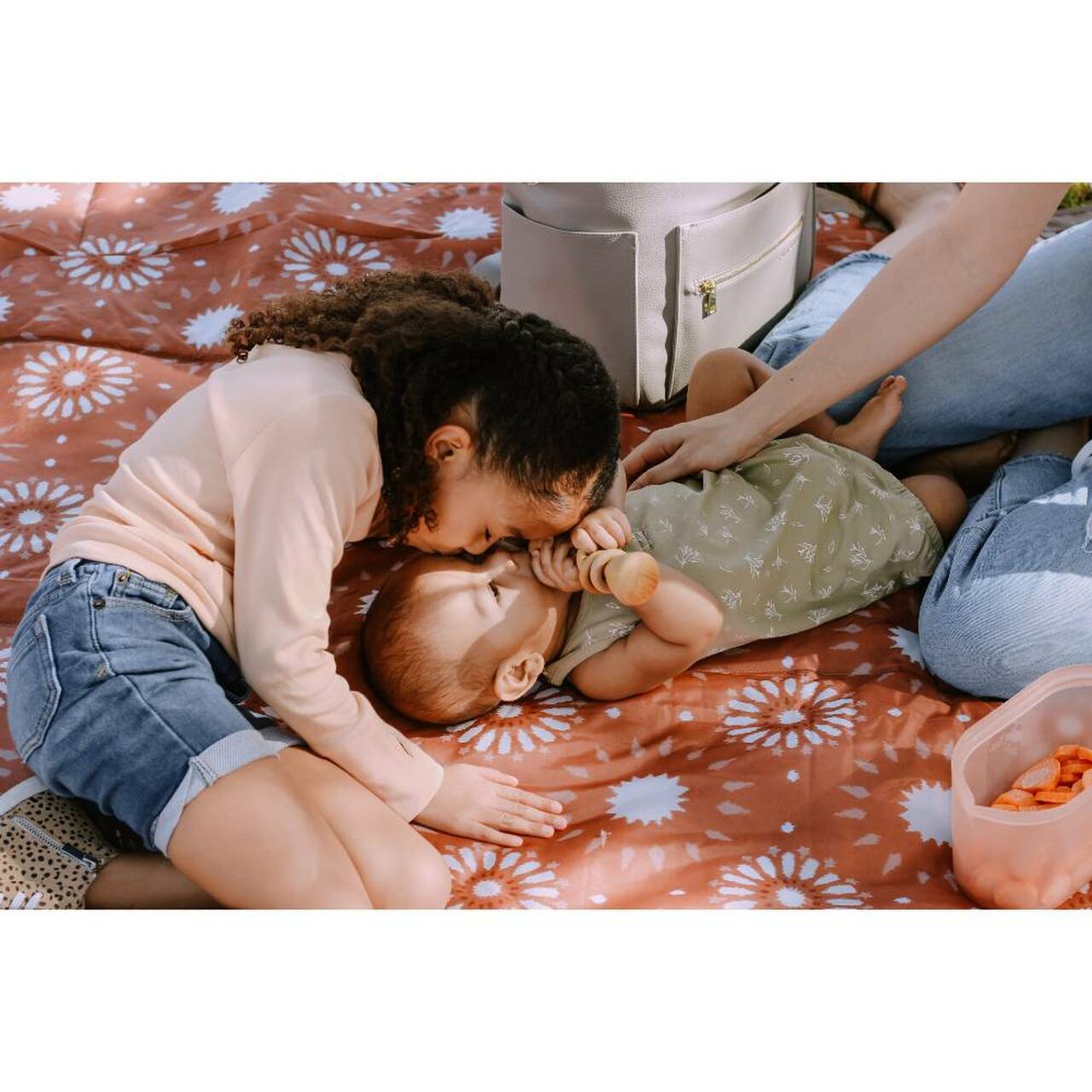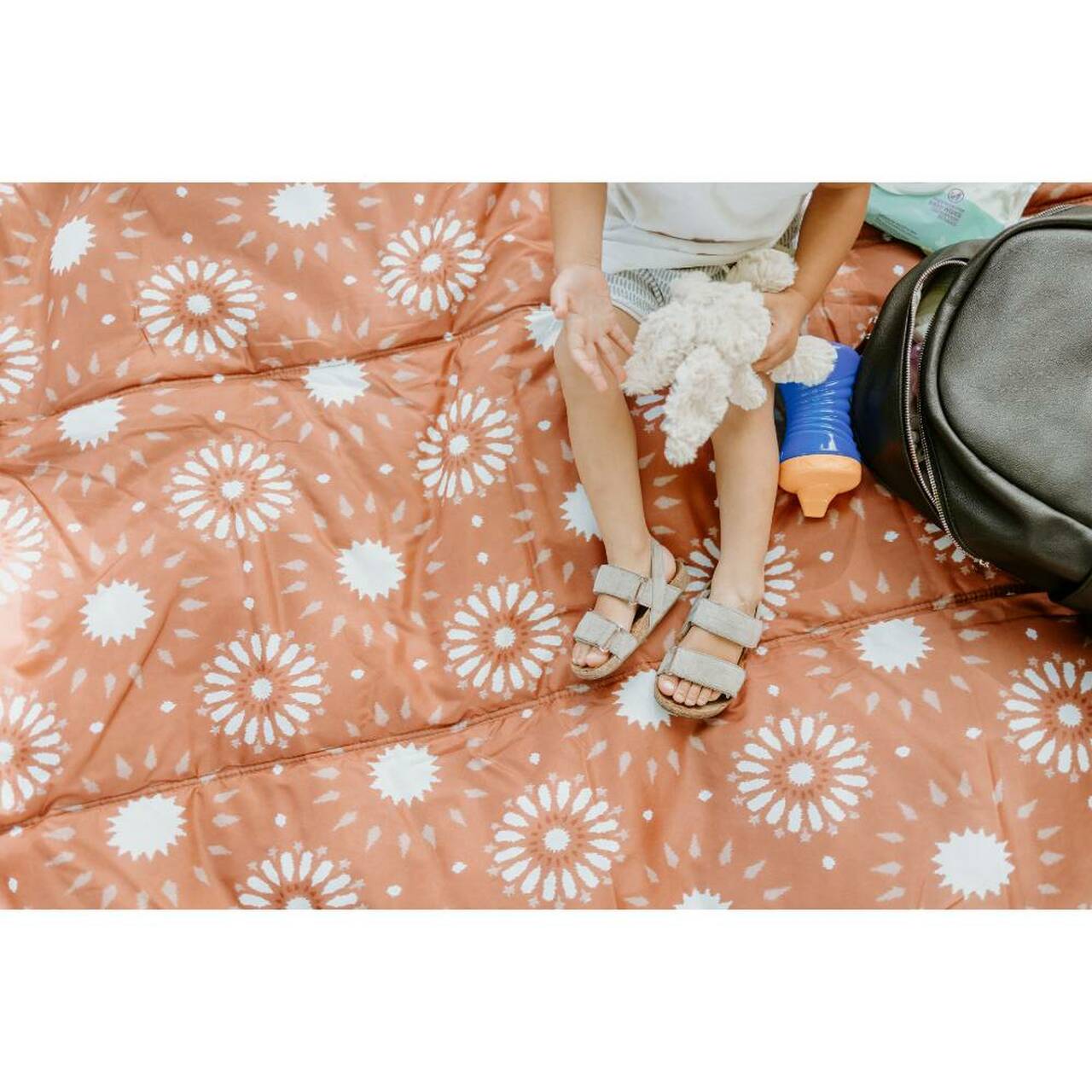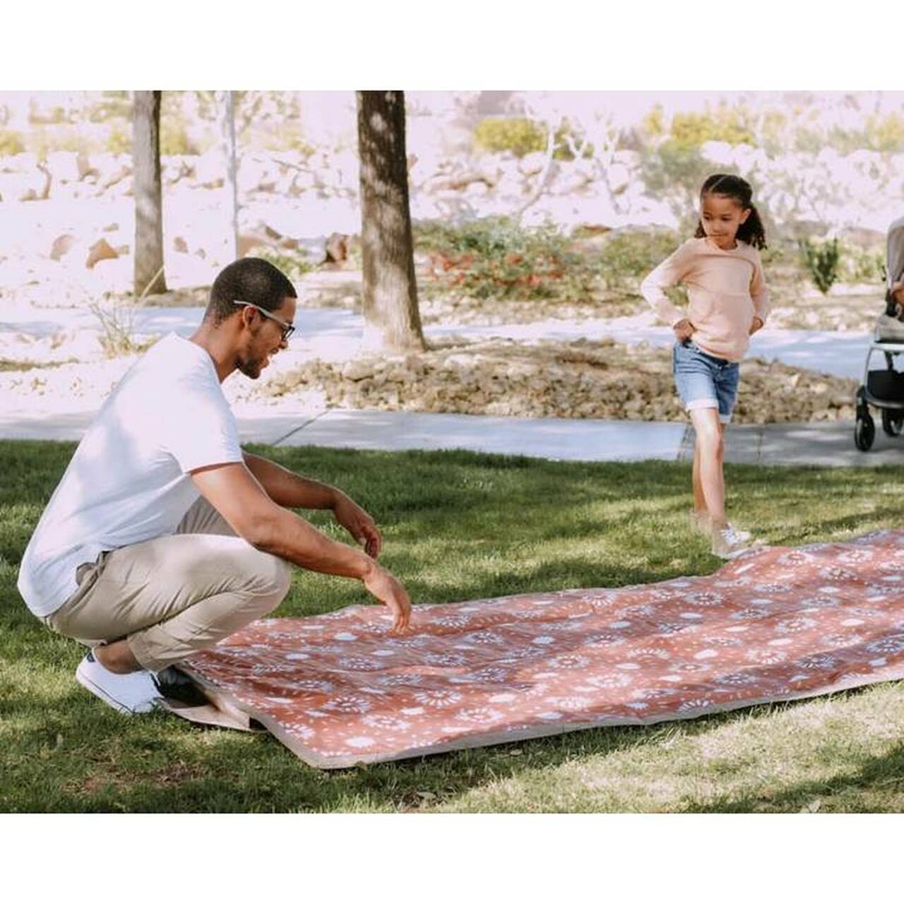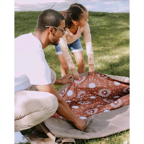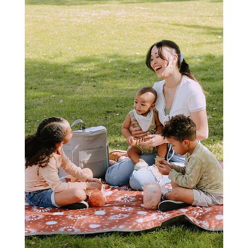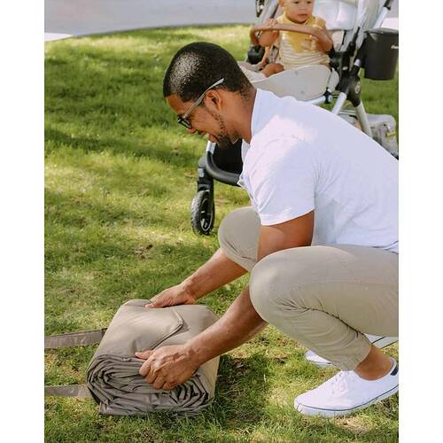 The Bring-It-Everywhere Outdoor Blanket enlarged to fit the whole family! Designed to handle spills and messes from the park to the beach, the water-resistant surface wipes clean for quick and easy cleanup. Featuring a compact and foldable structure with a pocket and convenient carrying strap so you can â and should! â bring it everywhere.
