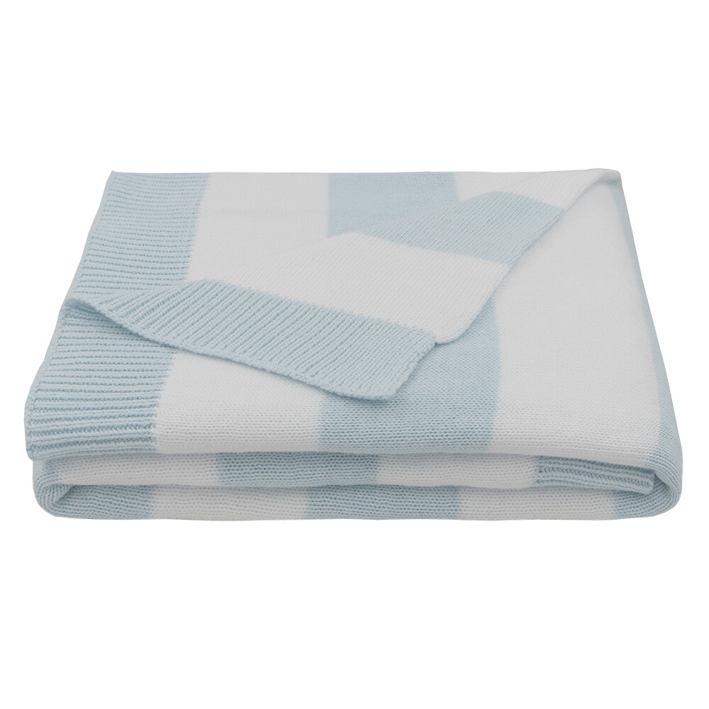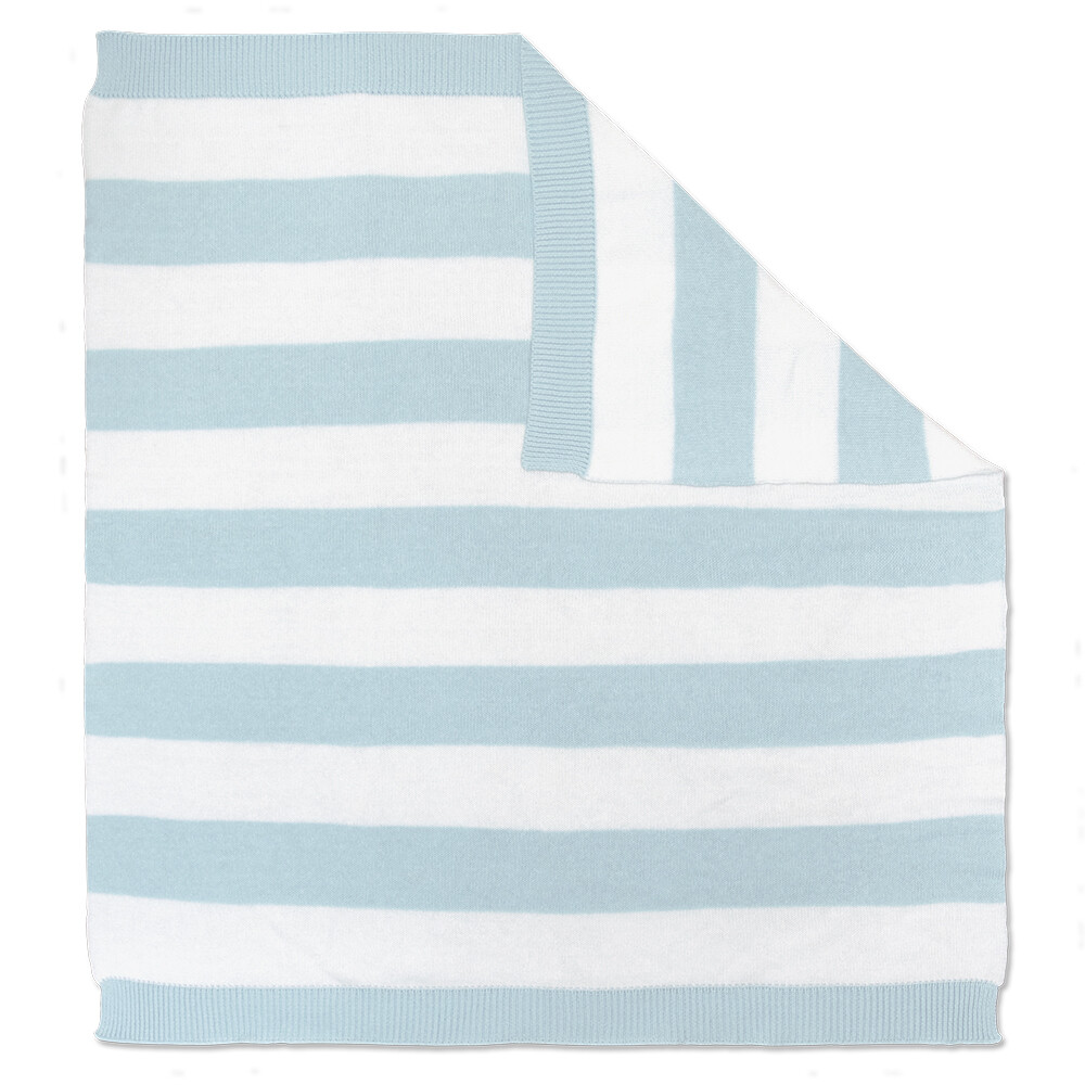 Versatile and light weight, this gorgeous 100% cotton pearl knit blanket features a classic contrasting navy and white stripe. Perfectly sized for the bassinet or pram with a hint of stretch to avoid bunching the mattress, this blanket is an essential for every baby.