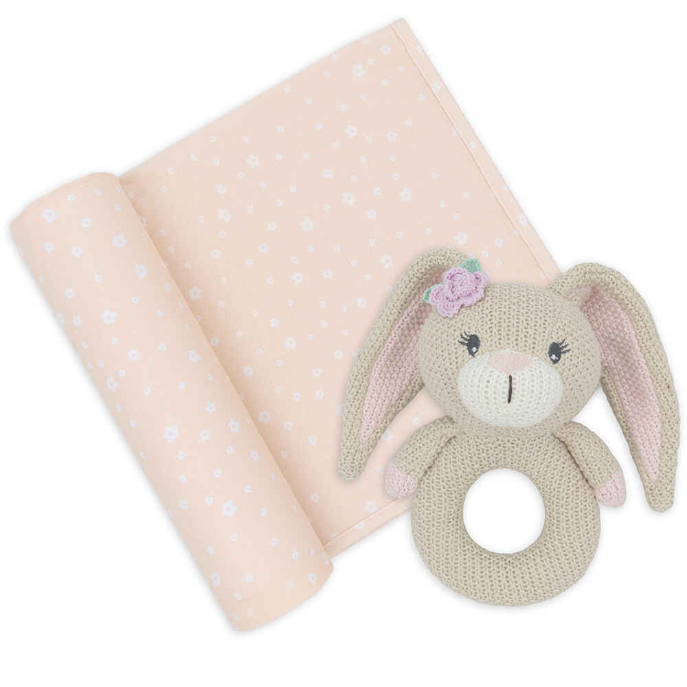 1 x Jersey Swaddle & Rattle