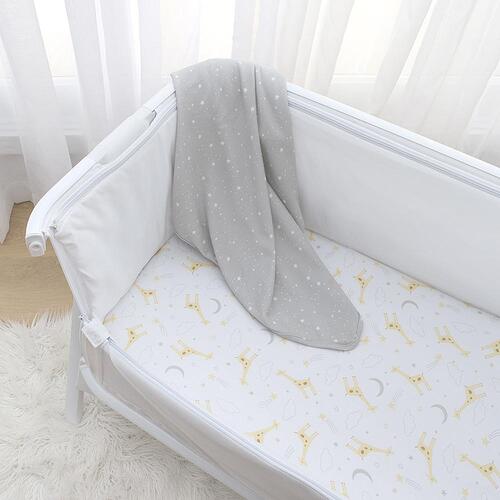 These Living Textiles fitted co-sleeper/cradle sheets will have little ones dreaming of a magical garden full or flowers and sweet singing birds. Crafted from soft and breathable premium 100% cotton jersey these sheets lay smooth beneath your little one and are perfect all year round. Featuring two complementary prints so you can mix and match, these fitted bedside bassinet sheets are fully elasticated with extra deep sides for a secure fit. Match back with our other items from the Ava collection to create the sweetest nursery for your little one.