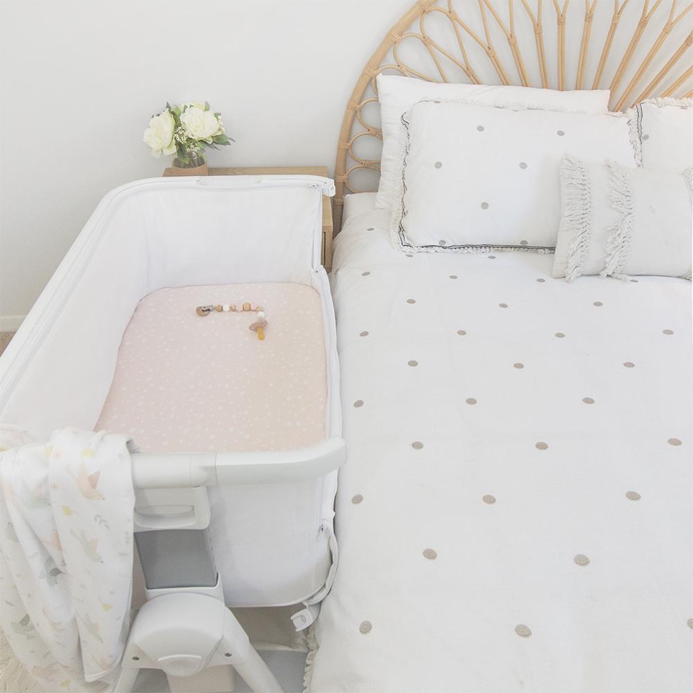 - Sized at 47 x 92 x 12cm to fit a range of co-sleepers and cradles including Tutti Bambini. Love n Care Co-sleepers, Childcare Snuggle Time Co-Sleeper, Boori Cradle, Chicco Next2Me Bedside Cradle, Bloom Alma Mini Crib, Arms Reach Co-Sleeper, Troll Bedside Bassinet, Babyhood Cradle and Co-sleeper, Kaylula Cradle, Childcare Cosy Time Sleeper, and more!