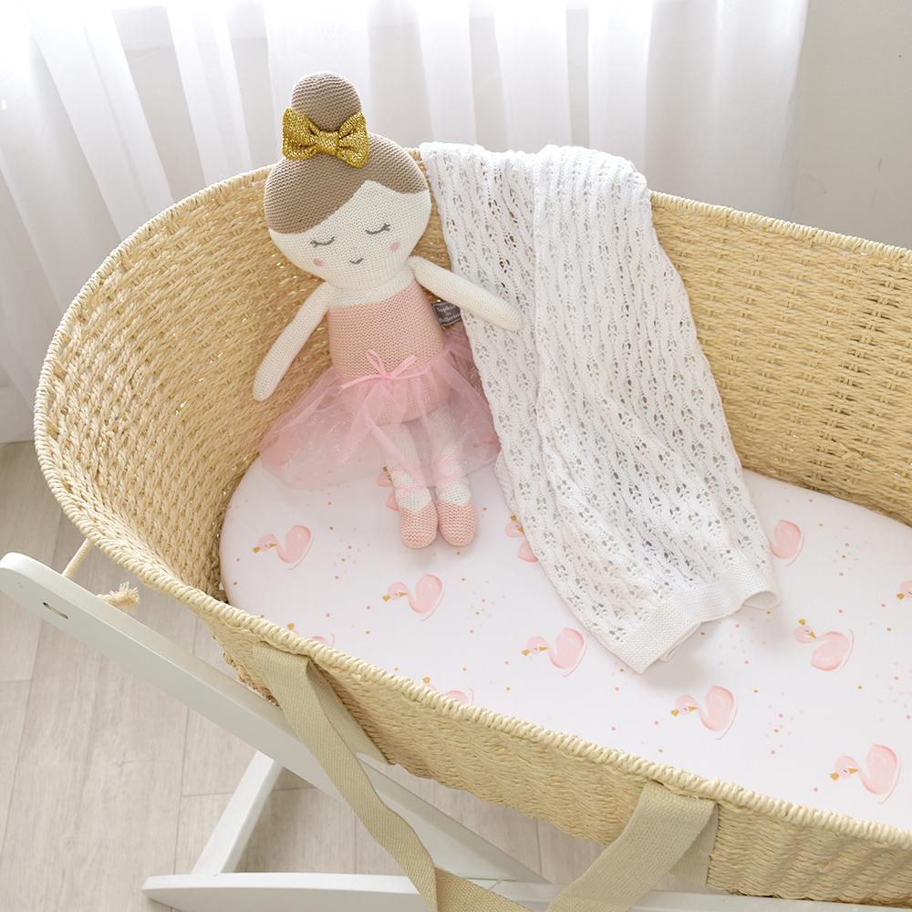 These Living Textiles Mason bassinet sheets will have littles ones dreaming of leading a parade with their favourite elephant pal by their side. Crafted from soft and breathable premium 100% cotton jersey these sheets lay smooth beneath your little one and are perfect all year round. Featuring two complementary prints so you can mix and match, these fitted bassinet sheets are fully elasticated with extra deep sides for a secure fit. Match back with our other items from the Mason collection to create your dream nursery.