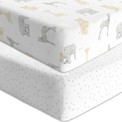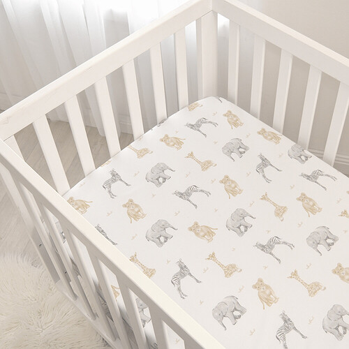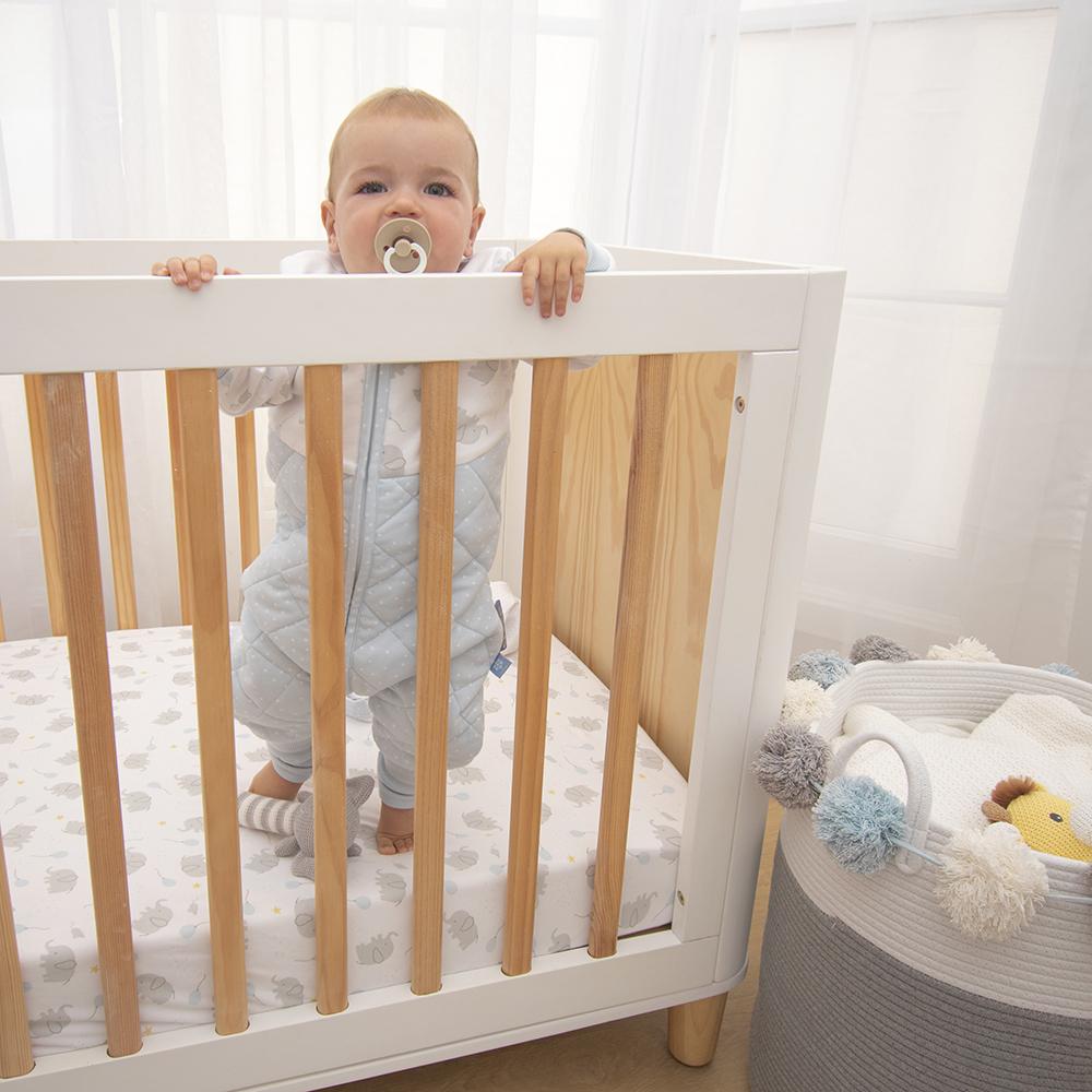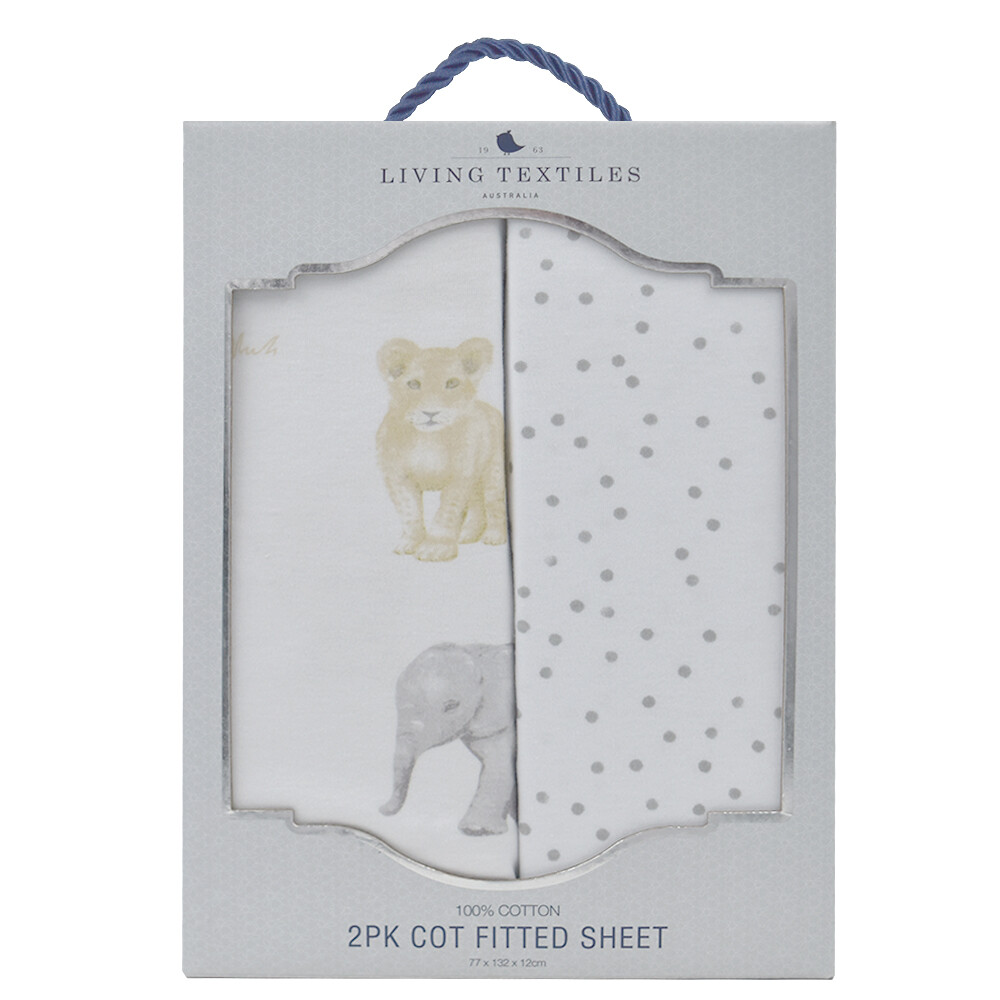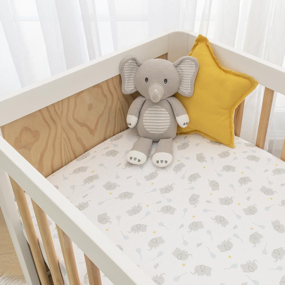 These Living Textiles Mason cot sheets will have littles ones dreaming of leading a parade with their favourite elephant pal by their side. Crafted from soft and breathable premium 100% cotton jersey these sheets lay smooth beneath your little one and are perfect all year round. Featuring two complementary prints so you can mix and match, these fitted cot sheets are fully elasticated with extra deep sides for a secure fit. Match back with our other items from the Mason collection to create your dream nursery.
