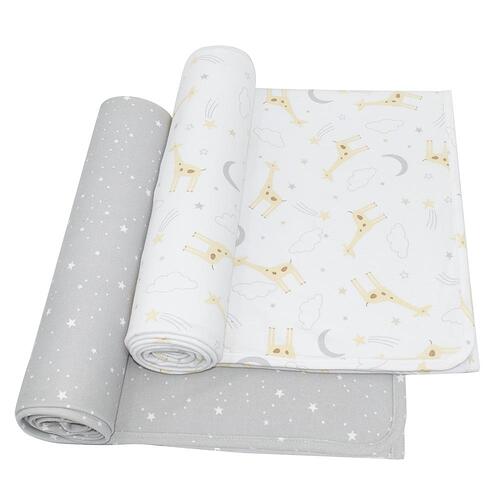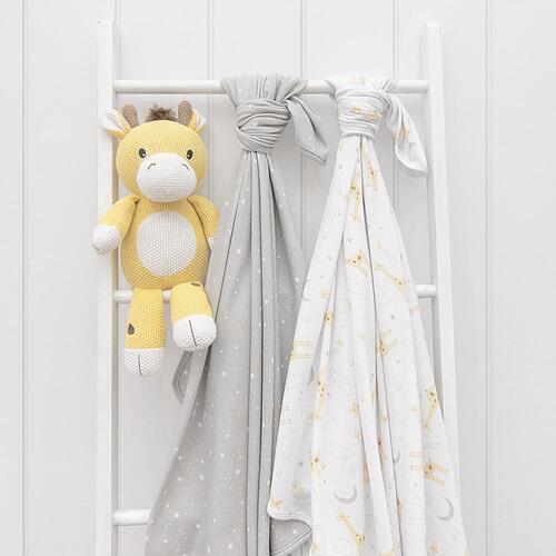 These luxuriously soft 100% cotton jersey swaddles are an essential for baby. Generously sized, super stretchy, they are fantastic for swaddling, as an extra layer in the pram or as breastfeeding cover. Featuring two complementary prints so you can mix and match these swaddle wraps are perfect for everyday use at home or on the go. Match back with our other items from the Ava collection to create your dream nursery.