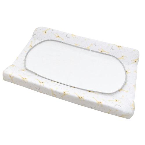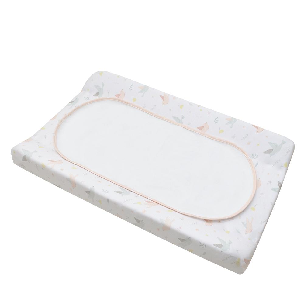 This Living Textile change mat cover and waterproof liner provides extra protection and easy clean up at change time. The 100% Cotton change mat covers features a sweet all over print and is fully elasticised for a secure fit to stay secure through tosses and turns. The waterproof liner trimmed in complementary fabric, is made from 100% cotton terry towelling with a PVC-free waterproof backing to protect the change mat from little spills and extends the time between washes of your change mat cover. Match back with our other items from the Ava collection to create the sweetest nursery for your little one.