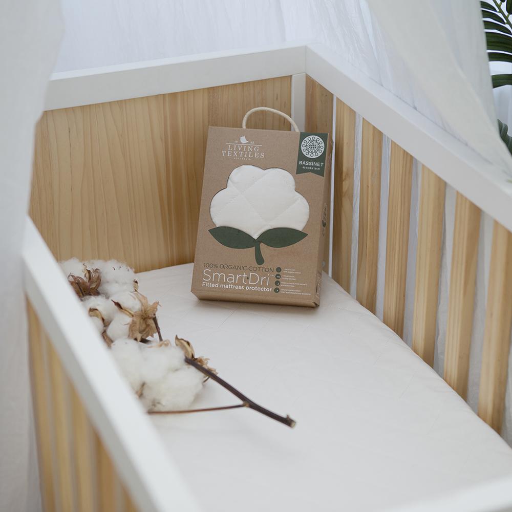 Made from luxurious 100% organic cotton, the Living Textiles Organic Smart-Dri waterproof mattress protector helps create a dry and healthy sleep zone for your precious little one. Certified according to Standard 100 by OEKO-TEX, you can sleep easy knowing that our mattress protectors are tested and verified as free from harmful levels of more than 300 substances.