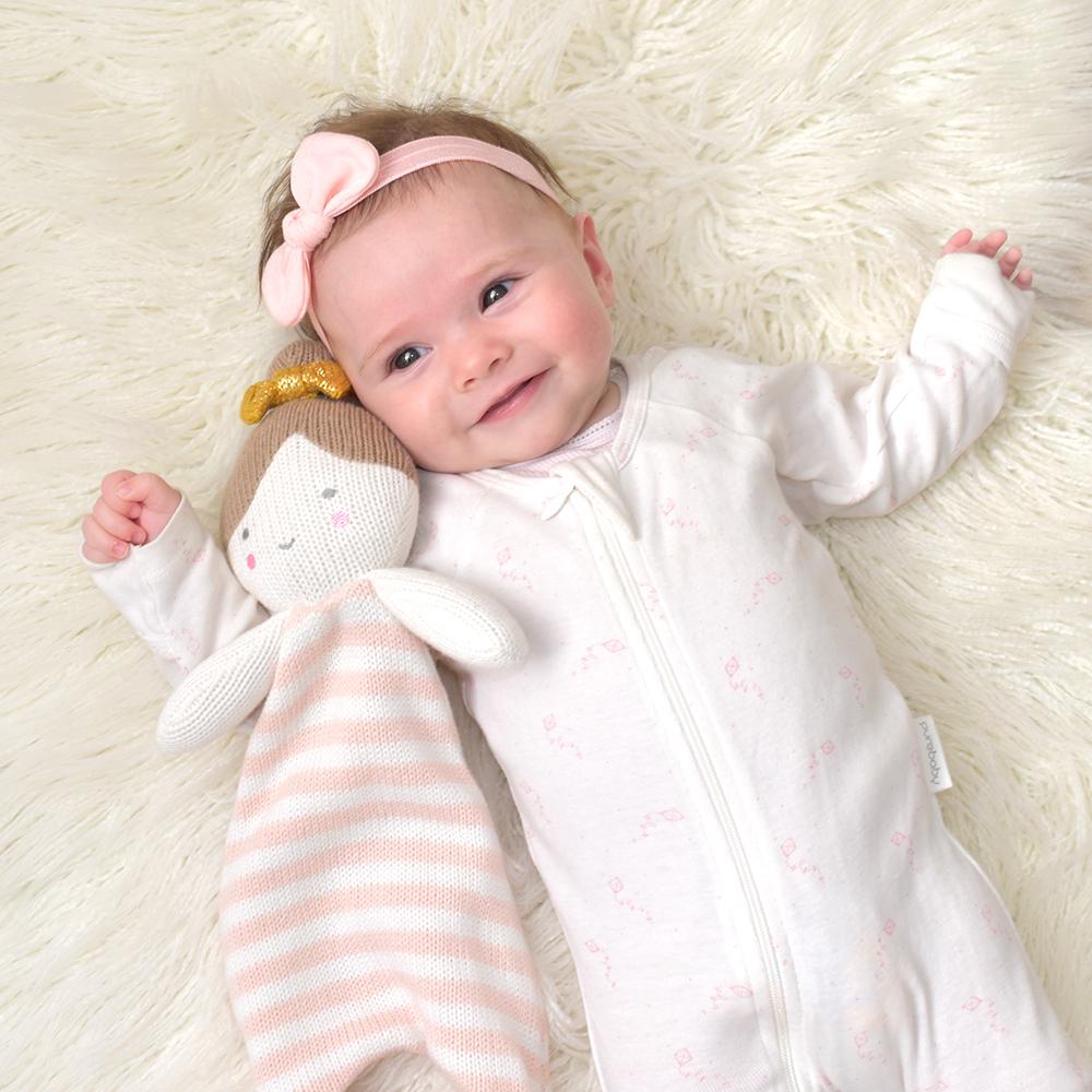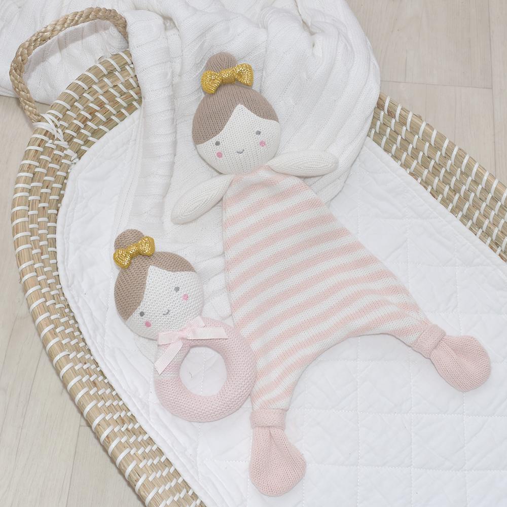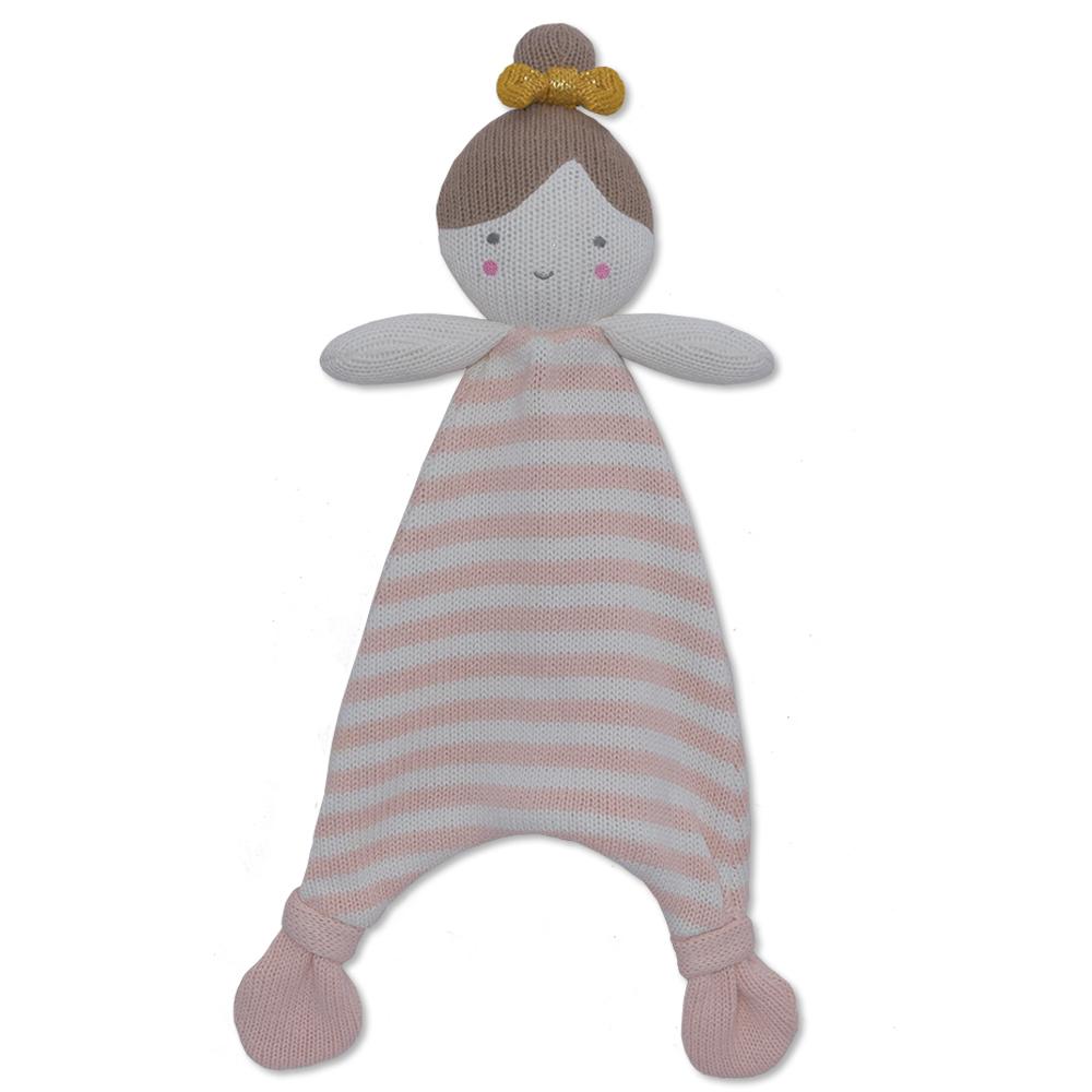 Give your little one a friend to snuggle with our sweet 100% cotton knit Sophia the Ballerina security blanket. Perfectly sized for little hands, with a sweet embroidered face, Sophia is sure to become baby’s favorite companion.