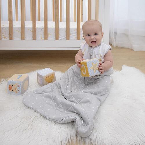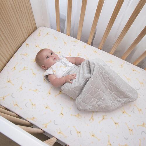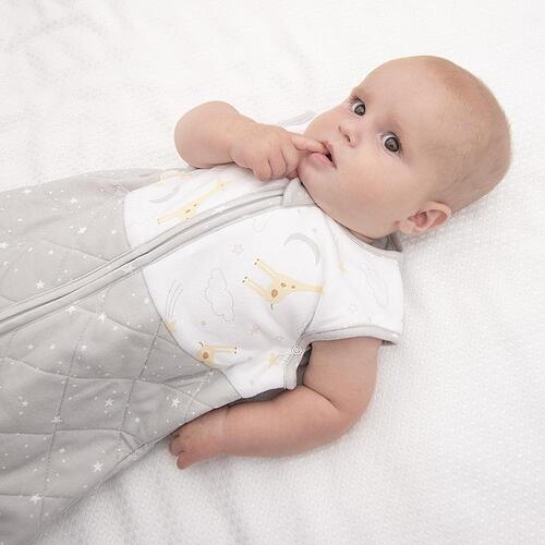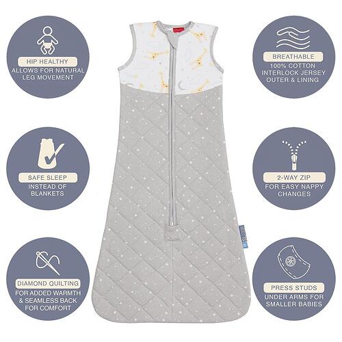 The Living Textiles Smart Sleep™ sleeping bag is made with a soft and breathable 100% cotton jersey inner and outer shell and is perfect for babies who have transitioned out of a swaddle. Designed to be used instead of blankets for safety – this sleeping bag helps to minimise the risk of SIDS & prevent your baby from waking up uncovered. The fitted neck and armholes, with additional press stud for smaller babies, reduce the possibility of slipping, whilst maintaining complete freedom to move with a hip healthy bell shape design. Its Better Sleep Made Easy.