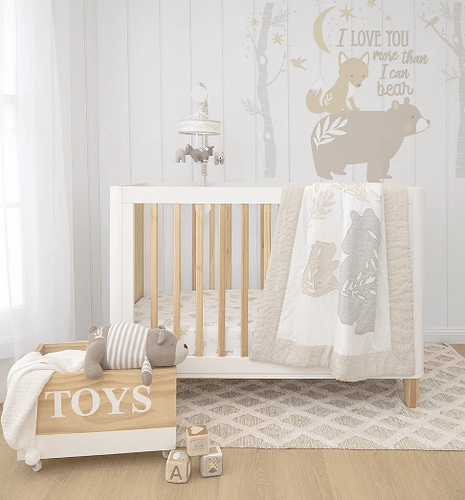 Match back with our coordinated Bosco Bear accessories including a musical cot mobile, playmat and fun removal wall decals to create serene nursery for your little one.