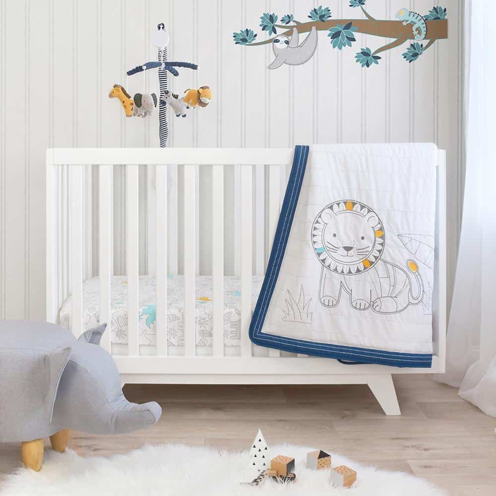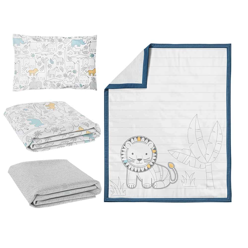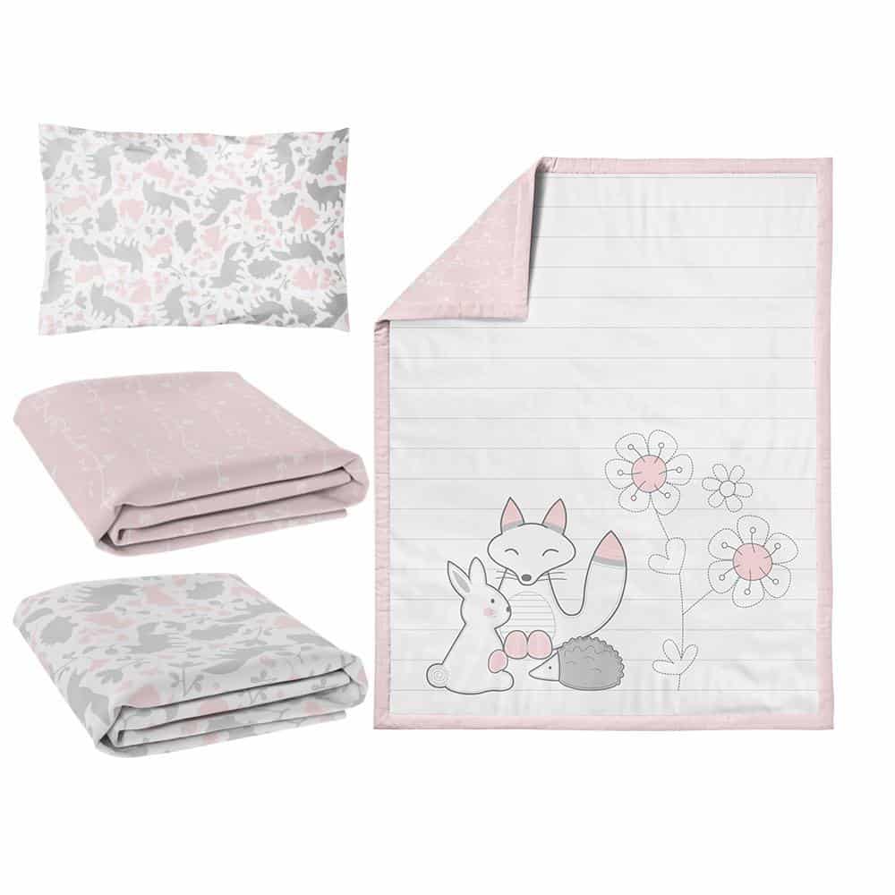 - Nursery set includes cot quilt, 2 x fitted sheet and pillowcase