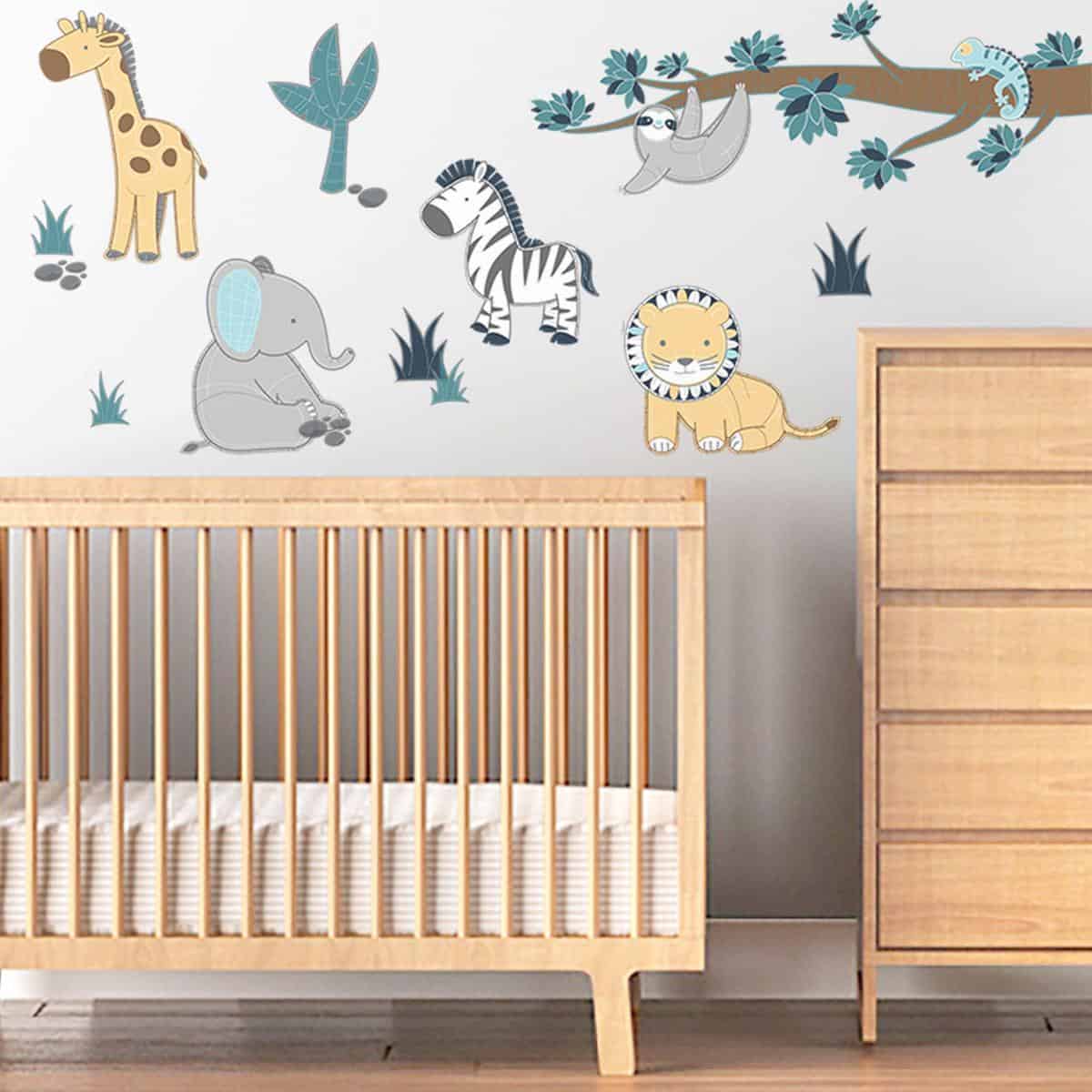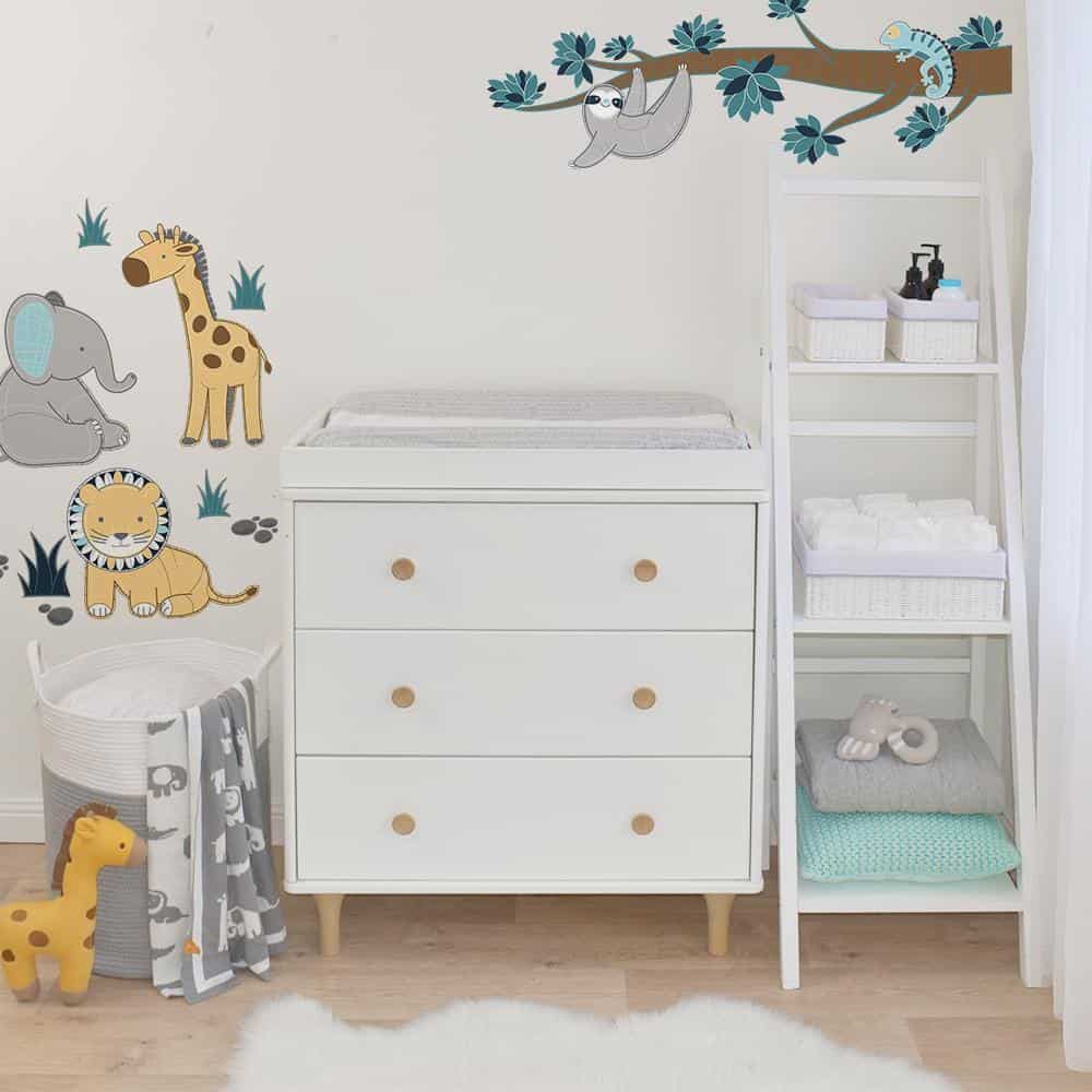 These beautiful Safari decorative wall stickers will brighten up any room. Featuring a cheeky sloth just hanging out and cute safari animals that you can place any where you decide Just peel away the self-adhesive, pre-cut stickers, smooth onto a clean surface and voilà instant feature wall!