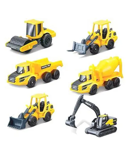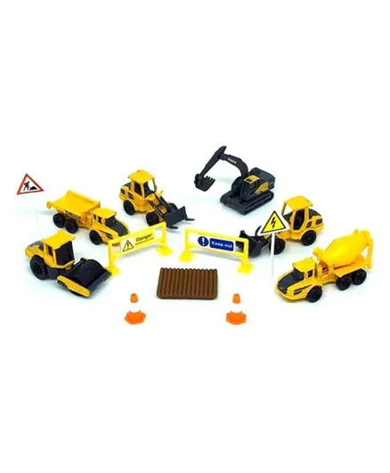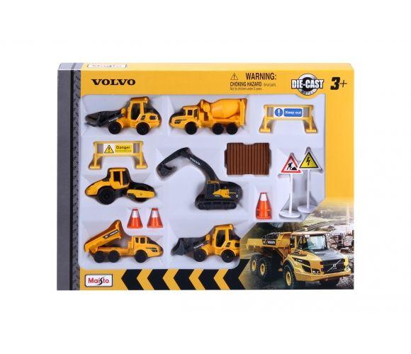 The Maisto Volvo Construction Set is a pack of Volvo construction vehicles with a selection of building site accessories.