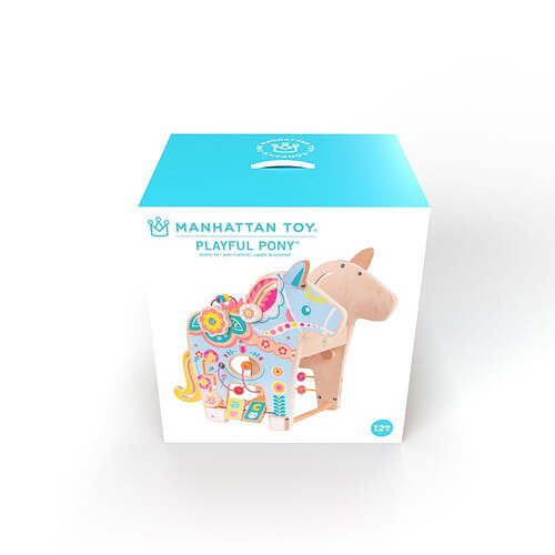 This Norse horse is packed with multiple play surfaces, bead runs, peg mazes and more. Teaches cause and effect learning while fostering fine motor skill development and hand-eye coordination. The Playful Pony becomes beautiful decor in any playroom. Winner of a Hot Diggity Award.