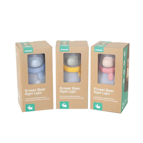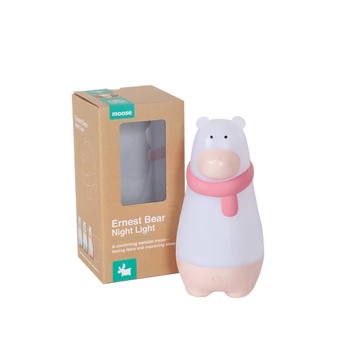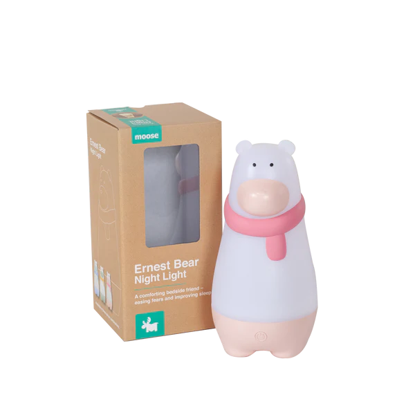 Just enough light to ease your toddler’s fear of the dark … not so bright that it’ll keep him awake.Every parent knows that putting your little person to bed can be one of the most challenging times of the day. Not only does Ernest the Night Light Bear help ease your toddler’s fears of the dark, but he provides just enough light so you don’t bang into furniture or trip on a toy when checking him at night.