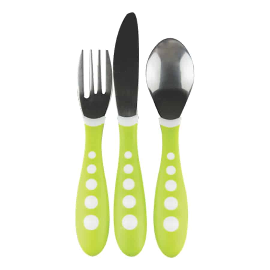 As your child has become older a few things have worked out smoothly, almost on their own it seems: e.g. eating with a fork and spoon. But now, more and more is being copied from the “big ones” – including how things are cut. The NUK Big Kids Cutlery Set lets them do just that: the fork, spoon and knife are made of real stainless steel. The small shape that is just right for a child’s mouth with its rounded edges and prongs, along with the ergonomic anti-slip handle, have been designed entirely for children’s needs and are ideal for their first encounter with stainless steel cutlery. NUK Big Kids Cutlery Set is recommended for toddlers from 18 months old. All parts of the NUK Tableware range fit together and can be added to as your child’s abilities improve.