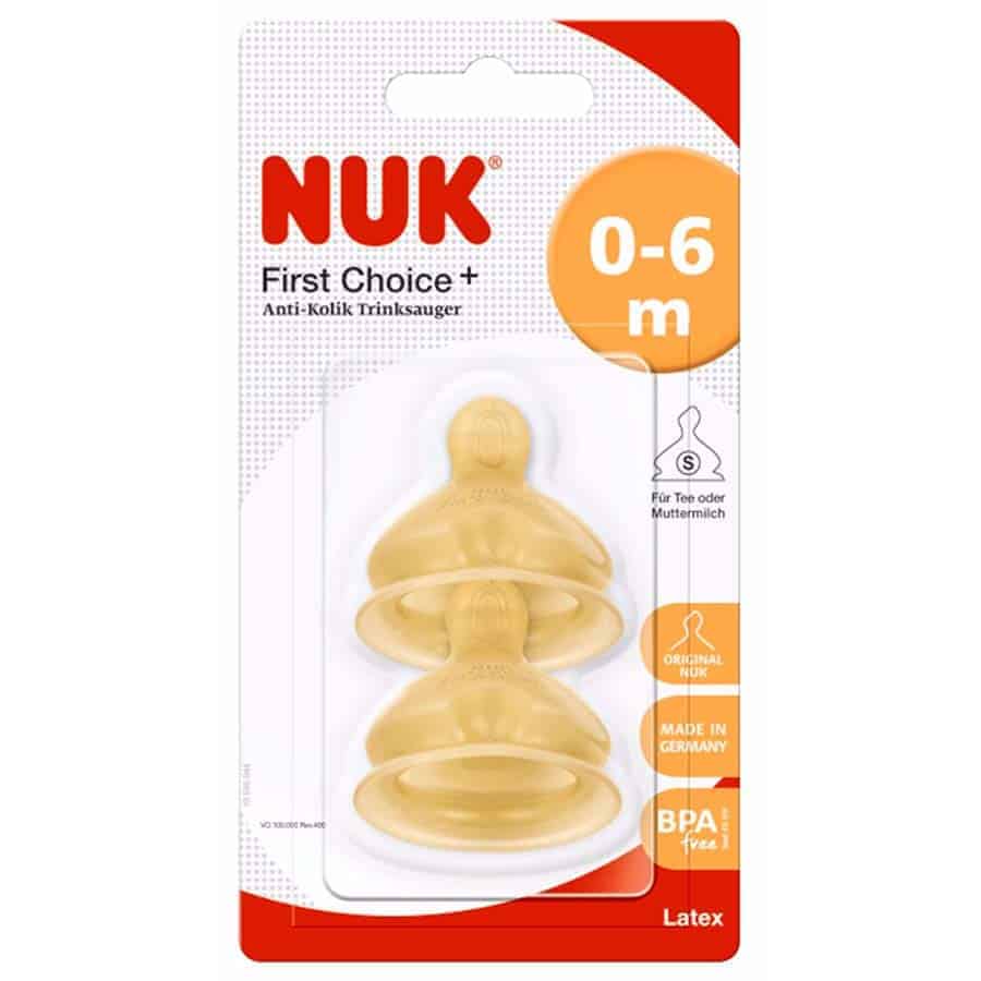 NUK First Choice+ Latex Teat, for a natural feeling while drinking, shaped to suit the jaw, 2 Teats