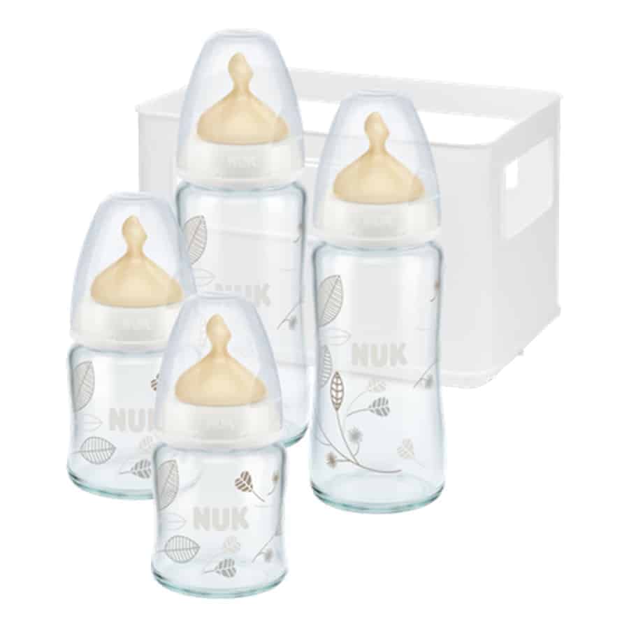 NUK First Choice Plus Starter Set Glass, with 4 Baby Bottles incl. Latex Teats and Bottle Box, Age 0-6 Months