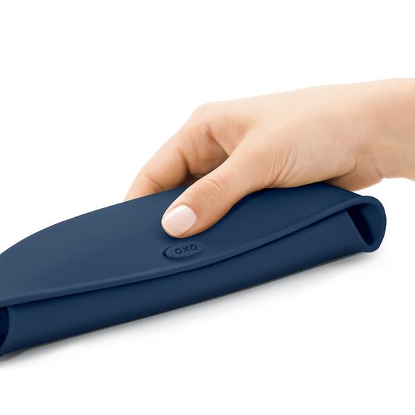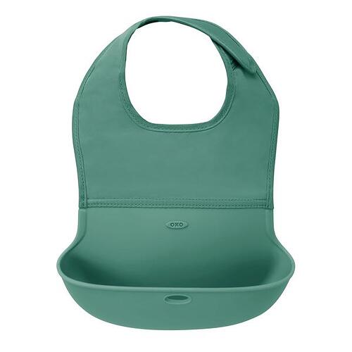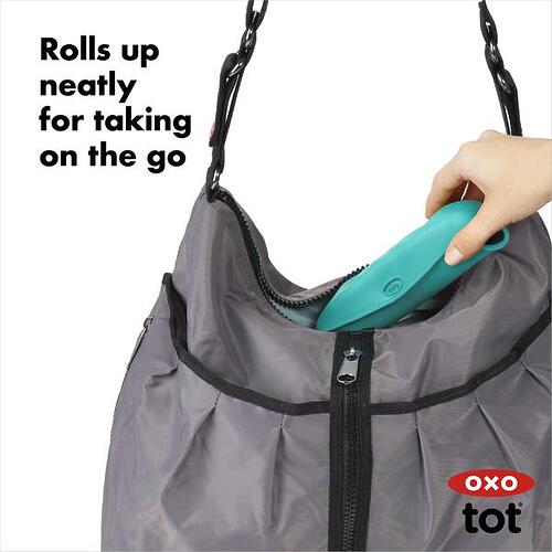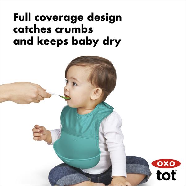 The handy OXO Tot Roll Up Bib makes mealtime messes more manageable. Shaped for comfort, it provides ample coverage to protect baby’s clothes and features a food-safe pocket wide enough to catch stray pieces of food that miss baby’s mouth.