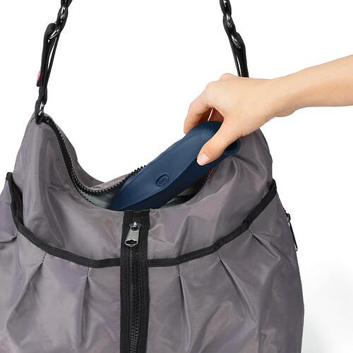 - Fabric rolls up into pocket for portability