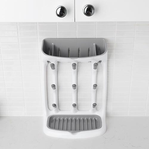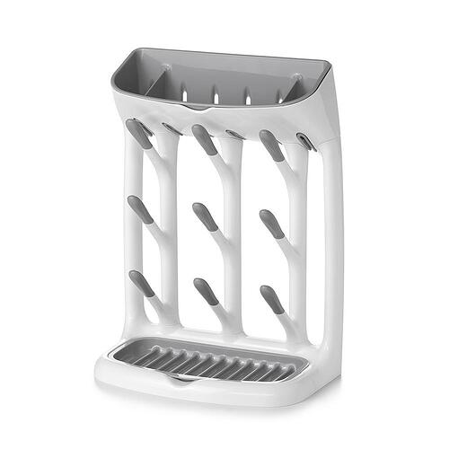 - Angled pegs hold cups and bottles at just the right angle for thorough drying