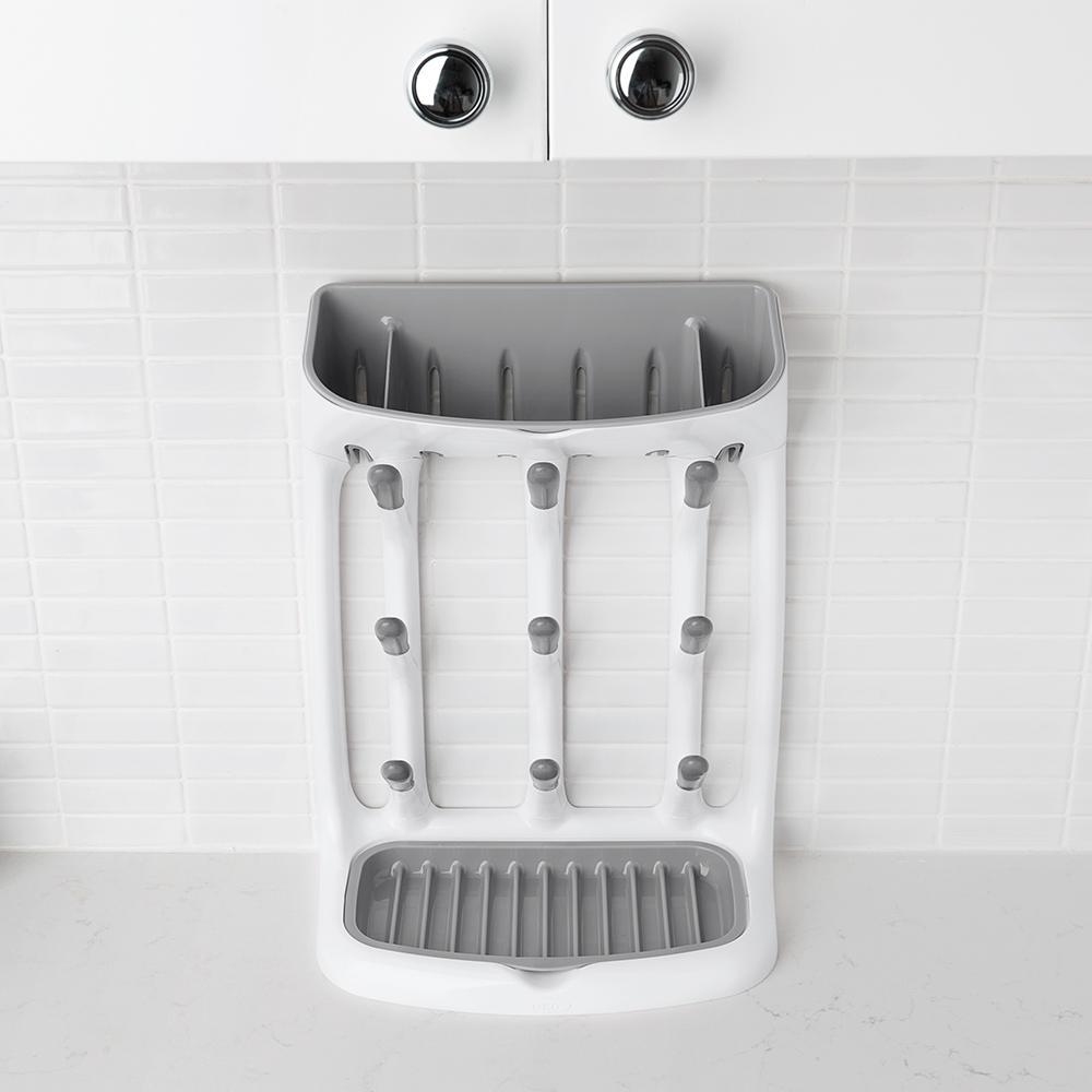 Free up valuable counter space. With a compact design that makes a big impact, the Space Saving Drying Rack will hold cups, bottles, and all their parts without cluttering the countertop.