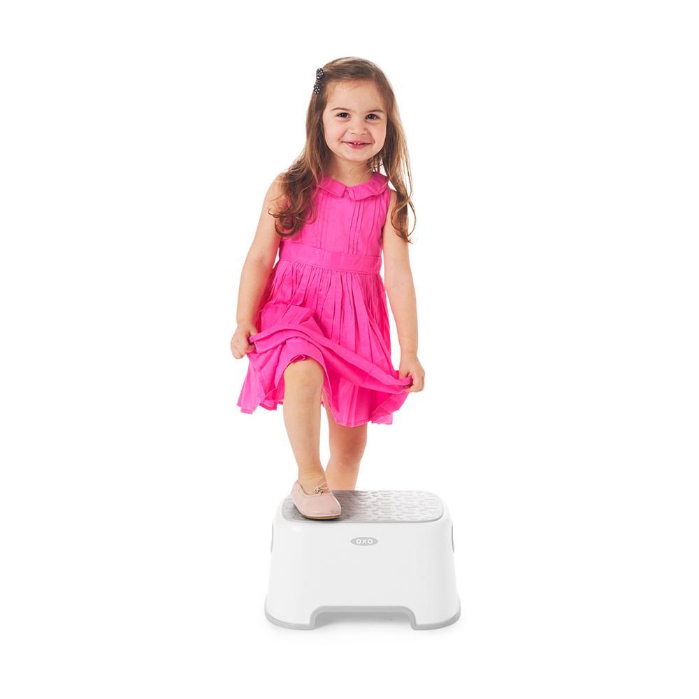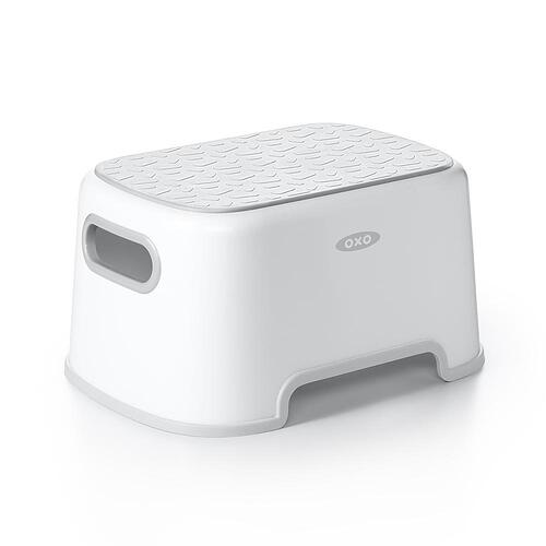 The OXO Tot Step Stool provides the 7” boost your little one needs to be more independent. The non-slip pattern on the surface keeps little feet from slipping, while the non-slip base keeps the Step Stool firmly in place (even when your little one can’t stand still). The easy-to-grip handles make it simple for anyone in the family to carry from room to room.