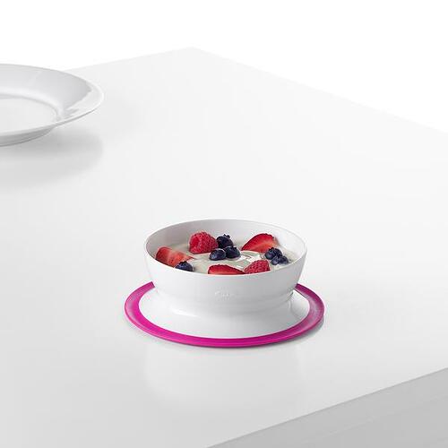 The Stick & Stay Suction line includes a Bowl, Plate and Divided Plate that feature a secure suction base that sticks firmly to surfaces until mealtime is over. The parent-friendly design makes these plates and bowls easy for grown-ups to remove, but tricky for little ones, to prevent slipping, tipping or tossing. The side walls are designed to help tots with scooping to help promote self-feeding. These dishwasher safe bowls and plates quickly twist apart for thorough cleaning.