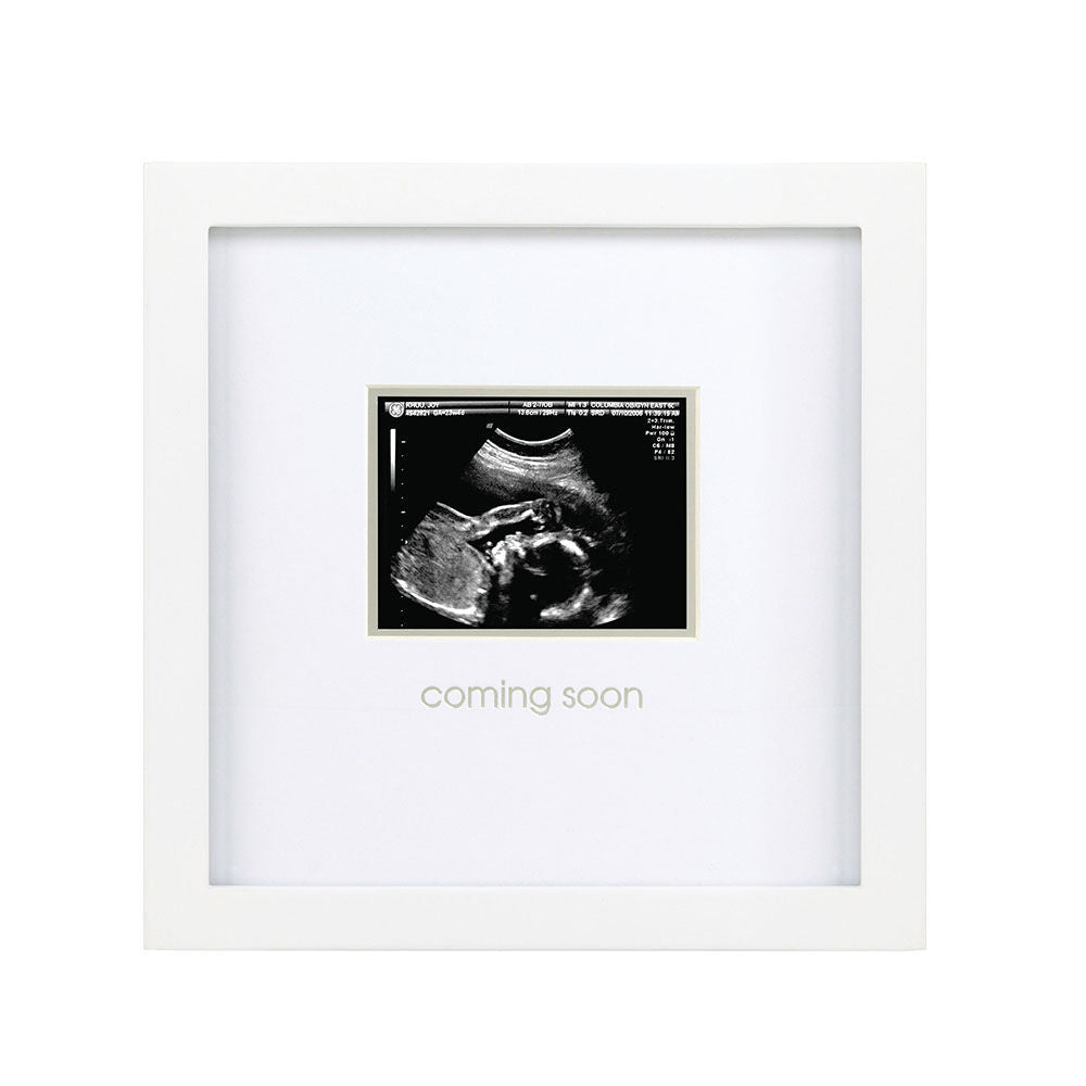 "There’s no feeling like seeing your bundle of joy for the first time. Pearhead’s sonogram frame is the perfect keepsake for always cherishing that special moment and your little one. This modern, white wooden frame holds a 3” x 4” sonogram picture. An acid-free beveled mat is included to border the sonogram picture. “Love at first sight” is silver foil stamped on the acid-free beveled mat adding an adorable touch to this keepsake frame. This frame is perfect for setting on any table or desk with the included easel. Or hang the frame in your home with the included sawtooth hanger. Celebrate your new bundle of joy with Pearhead’s sonogram frame. Product dimensions: 7” W x 6.75” H x .5” D; Photo insert: 3” x 4”