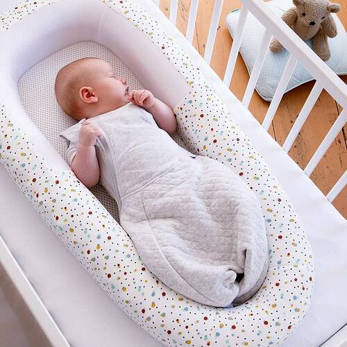 One of the key differences between the Sleep Tight Baby Bed and a nest is the firm sides. These have been designed to offer the same structure as a moses basket or bassinet, and are essential for stopping baby from being able to roll out of bed. While a nest has soft squishy sides that collape with weight on them, the Sleep Tight Baby Bed sides are firm and structured enough to keep baby safely inside. Using a sustainably sourced filling – Dupont™ Sorona® and innovative breathable panels and base, The Sleep Tight Baby Bed provides a healthy and safe sleeping environment day and night.