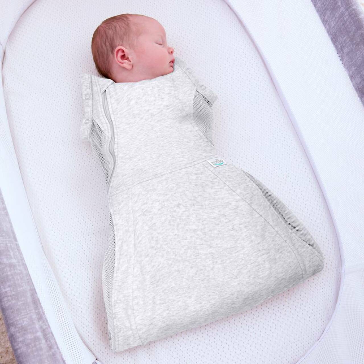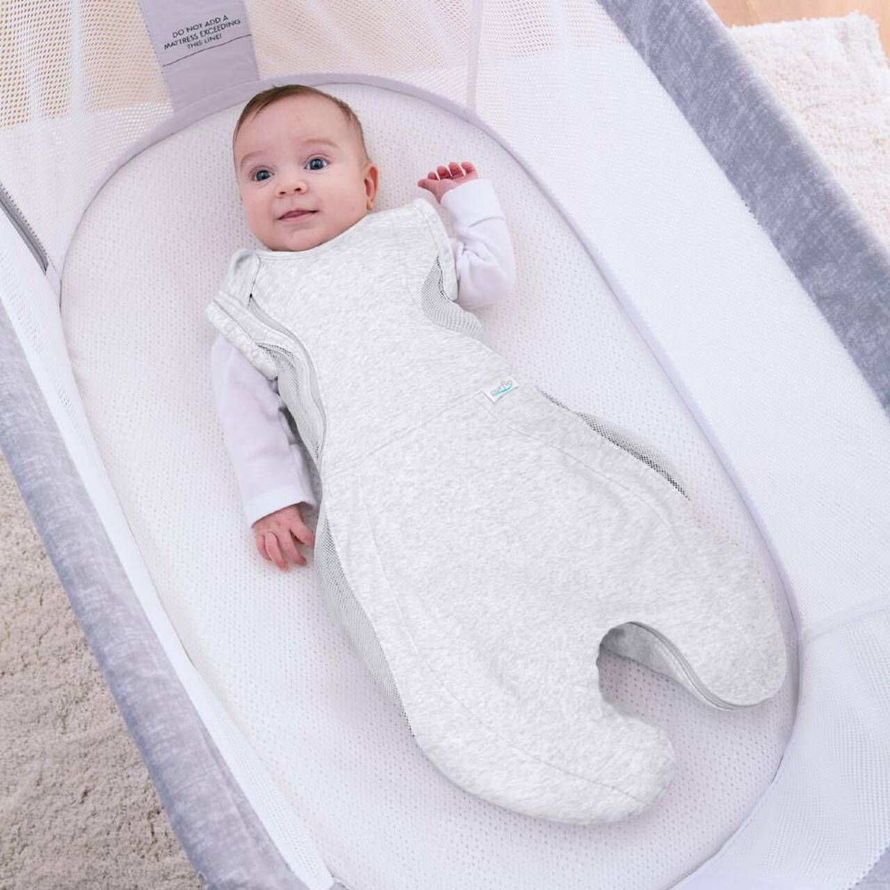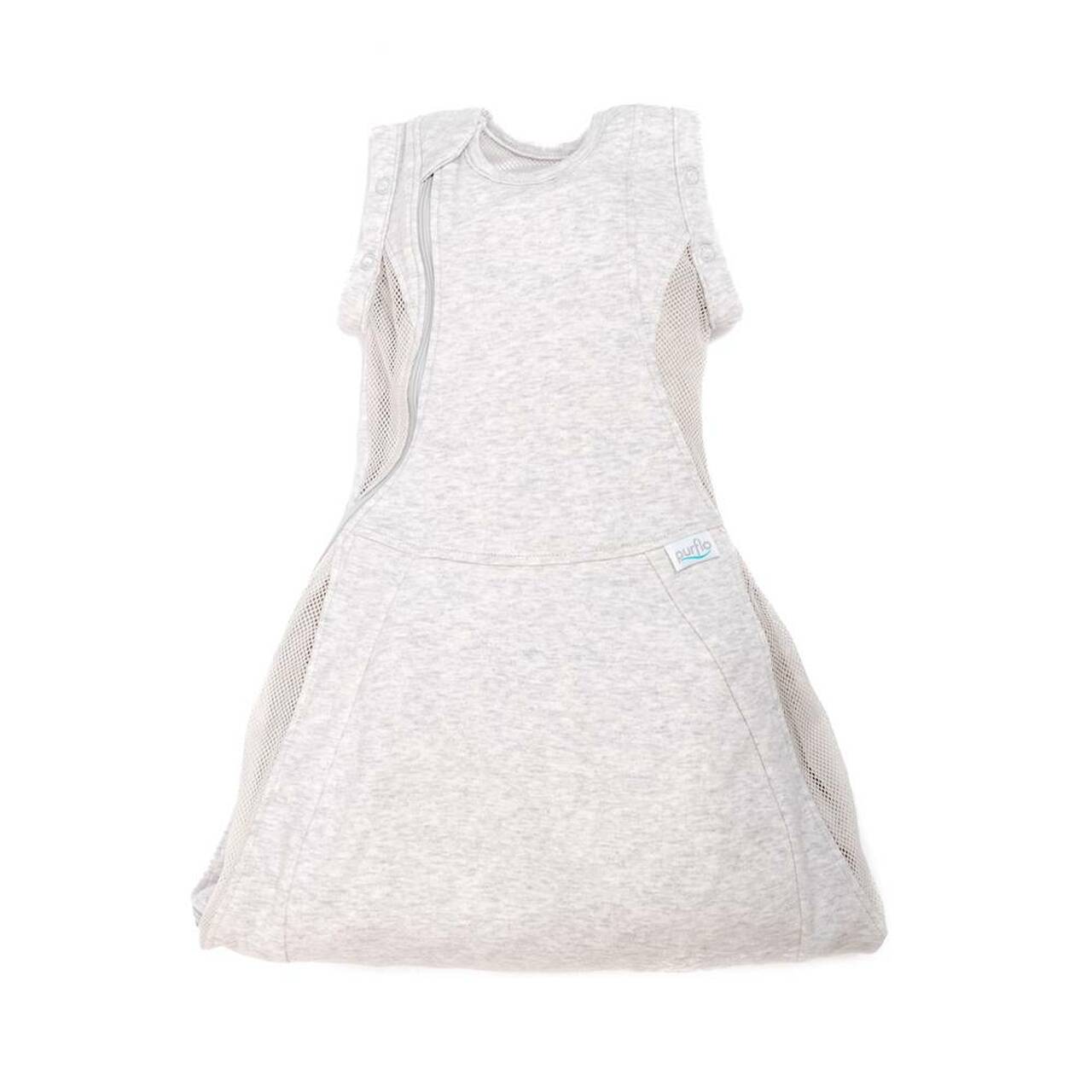 Get set for summer sleeptime with the Purflo 0.5 tog Swaddle to Sleep Bag! We know that during the hotter temperatures it can be difficult to know how best to dress your little one for bedtime, thatâs why the 0.5 tog swaddle to sleep bag is designed to help take away the confusion. Itâs designed with large breathable mesh panels to help air flow easily around your baby keeping them cool, whilst still giving them that comforting feeling that swaddling has. This Lightweight version is perfect for room temperatures of 18°C to 27°C, and comes with a what to wear guide so you know exactly how to dress your little one.