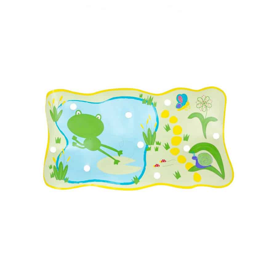 Safety 1st Froggy Friends No Slip Bath Mat helps protect children from slipping and hurting themselves when bathing. This colourful bath mat features the fancy PlaySafe pals playing in the pond and accompany your child during bath time. This mat is skid-resistant and has special suction cups that stick to the base of the tub or the floor. When not in use, the bath mat can be rolled and stored away.