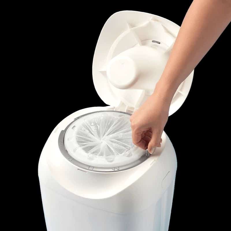 - Quick and convenient Just place the nappy in the well until gripped and twist the dial to individually wrap each nappy. One simple action and the nappy is sealed.
