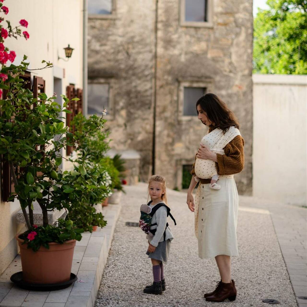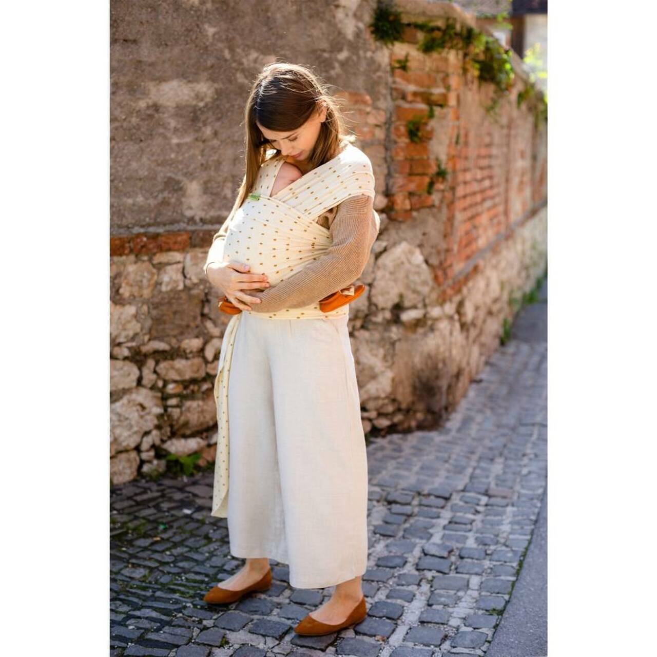 The Serenity Boba Wrap is a 2-way stretch fabric, which means it stretches both around you and your baby and across the wrap, rather than just the 1-way across stretch that is common in basic cotton wraps. Wear your Boba Wrap round the house, out and about and perfect for discreet and comfortable breastfeeding when you are out too.
