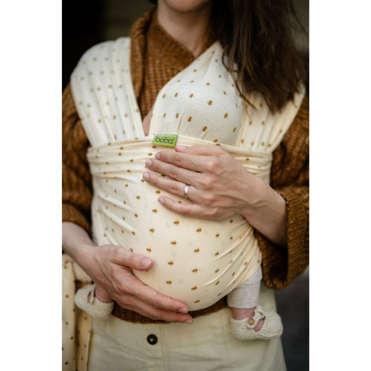 - No guess tying! Our intelligent fabric will cling perfectly to the contours of your body and your baby