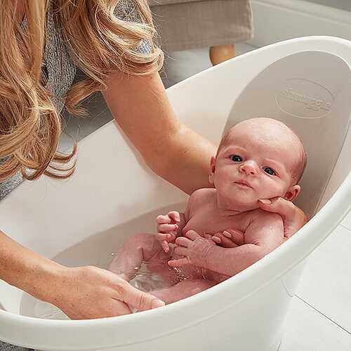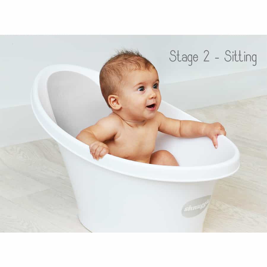 - The Shnuggle baby bath is designed to make bath time stress free and fun. Suitable from newborn it helps support even the tiniest baby right up to 12 months plus. The clever bum bump supports baby and helps them to feel safe and secure. Supports baby to give you both hands free