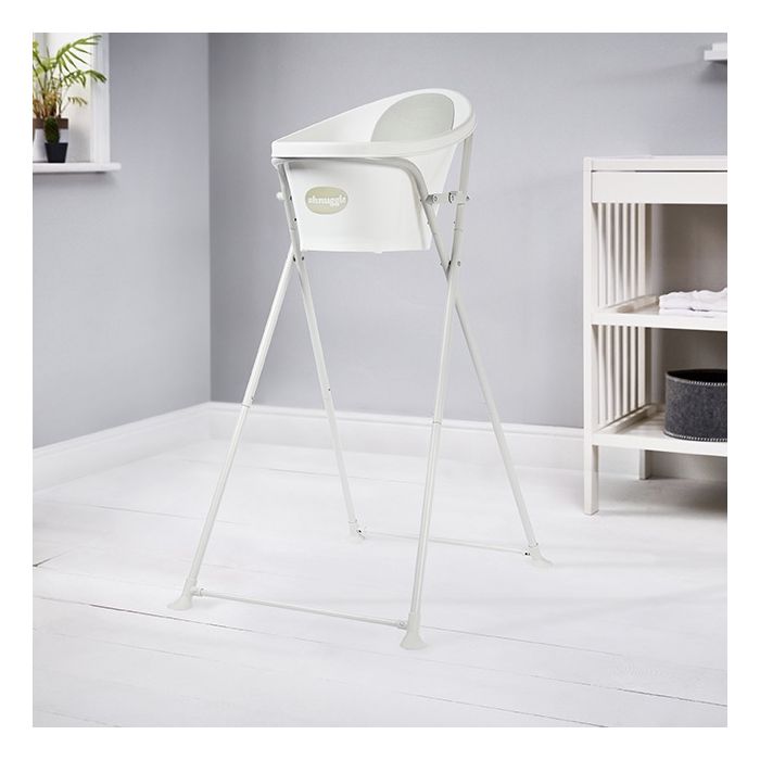 Complementing the Shnuggle Bath perfectly, the Shnuggle Folding Bath Stand raises your baby up to waist height, taking the backache out of bathtime and making it easier to bath your baby.