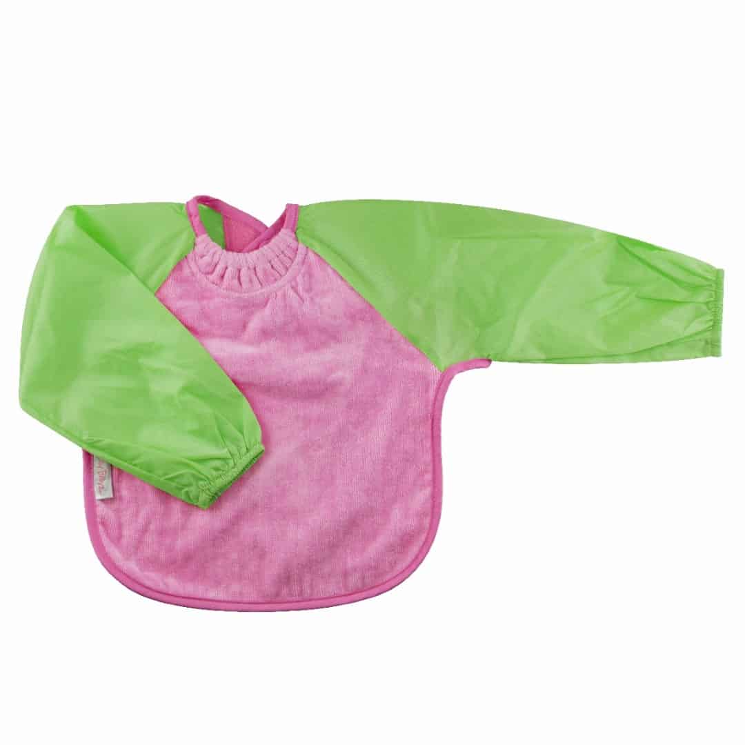Our Long Sleeve Bib is terrific for self-feeders! The water-resistant nylon sleeves provide extra protection from food wobbling off a spoon or fork. The open back allows babies and kids to stay cool and makes it easy to get on and off.