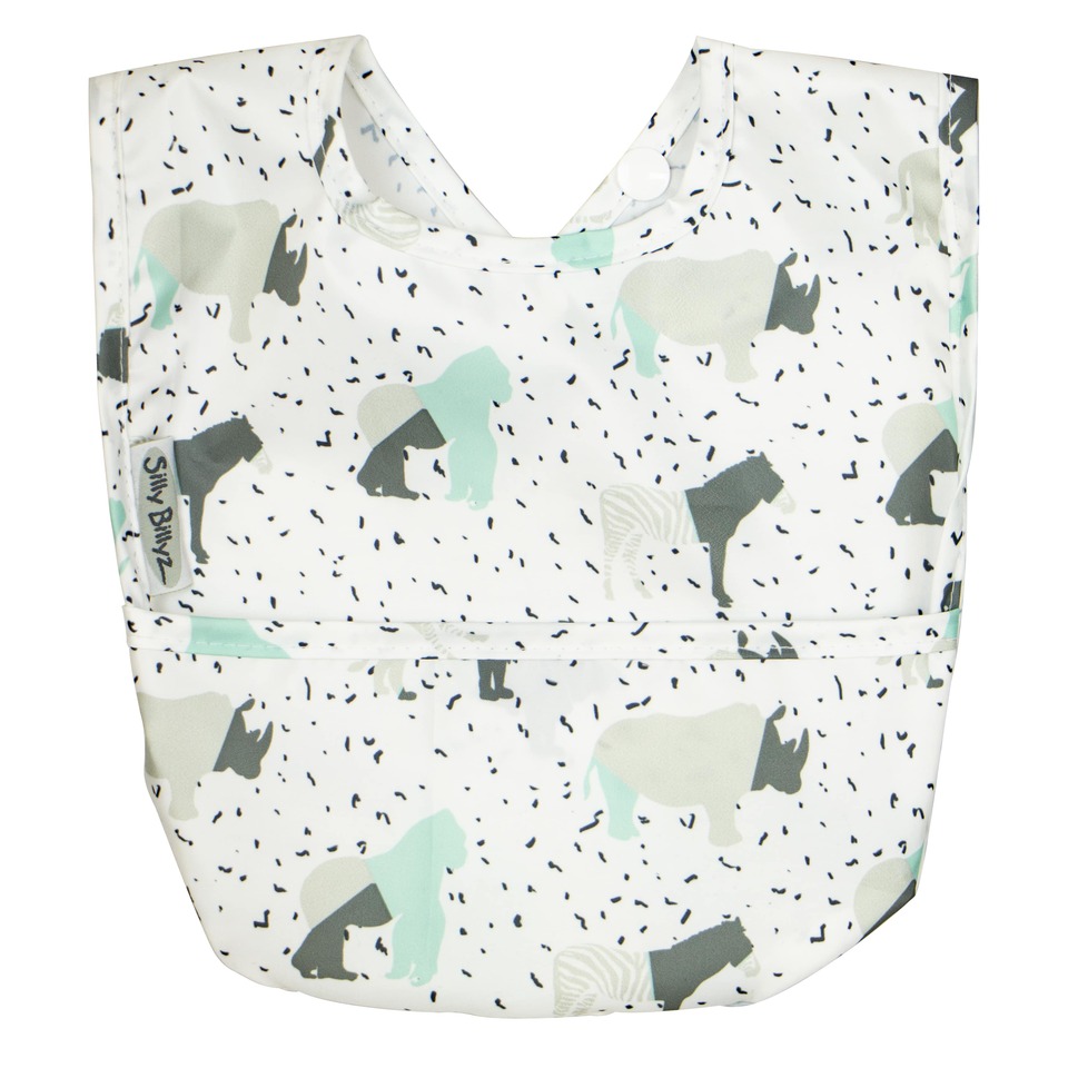 Our bright & fun new Wipe Clean collection of pocket bibs means you can simply wipe the coated front section of the bib down after each meal and wash it as necessary. The sweet design nylons are coated with baby safe PU which is easy wash tumble dry safe on low.