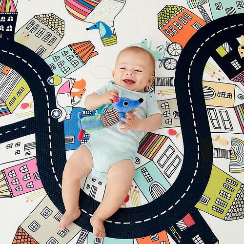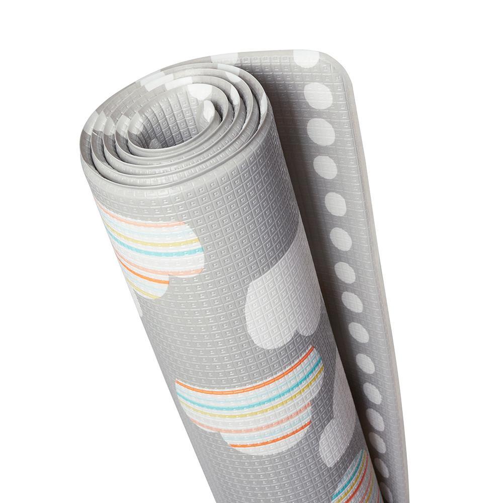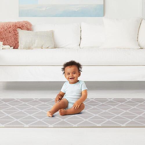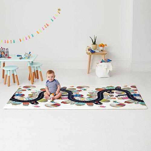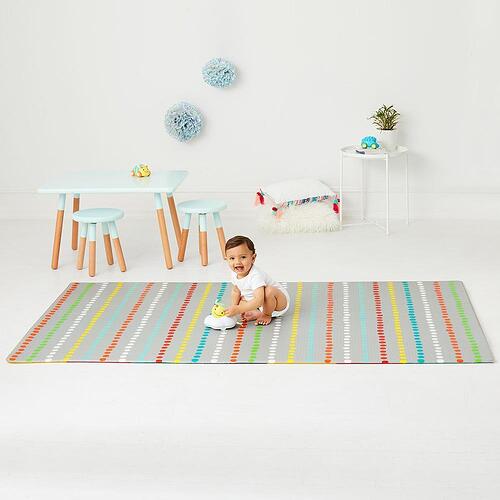 Designed to double the choices for stylish, baby-safe floor covering, Skip Hop’s reversible playmat flips from a colorful kid-friendly pattern to a modern decor print for two looks in one. Completely PVC-free, the easy-care foam mat provides a jumbo-size cushioned play space that works equally well in the livingroom or playroom. Simply roll it up for convenient transport and storage.