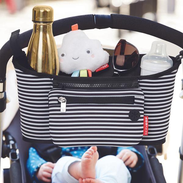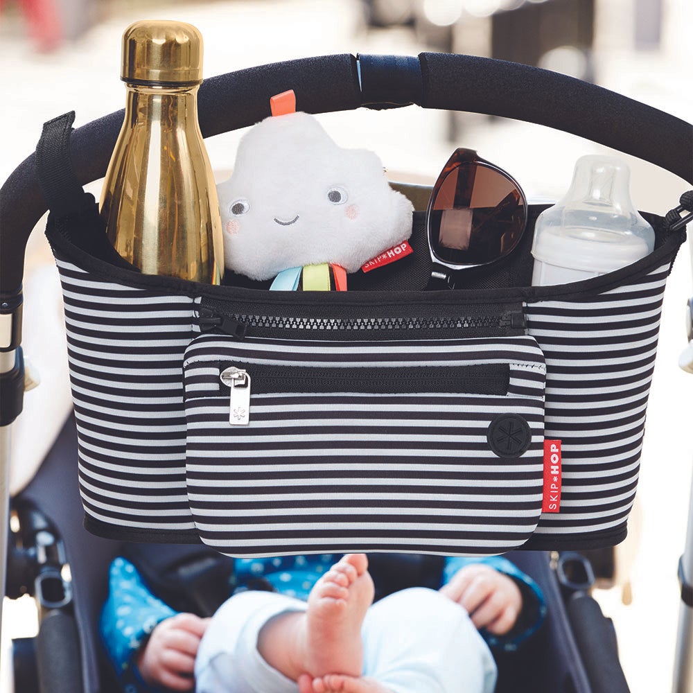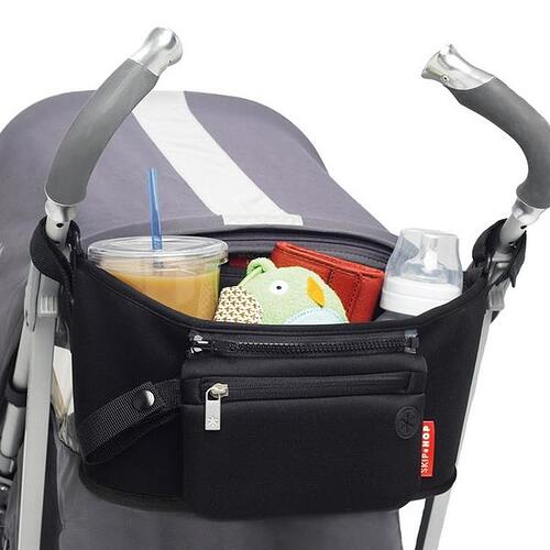 - Keep on most strollers when folding
