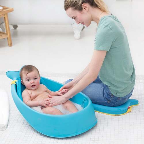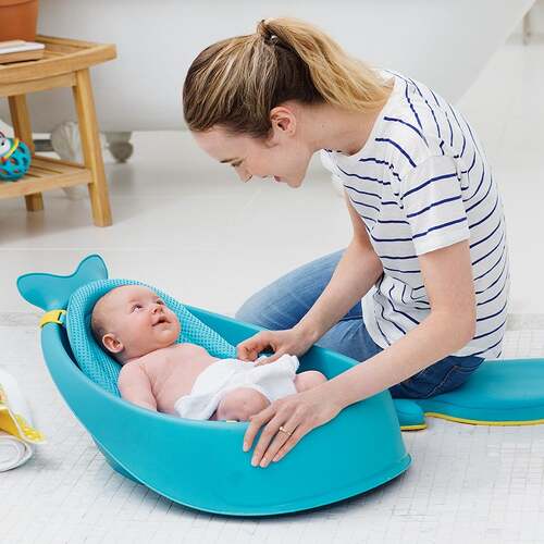Our versatile tub grows with baby through three stages and is the only baby bath tub you’ll ever need. The sling locks into two ergonomic positions: higher for full-body support and lower for seated support. Dual layered mesh and comfort-edge construction securely cradles baby from head-to-toe. The slings adjusts to a cushioned seat that comfortably supports babies learning to sit. Remove the sling when baby has mastered sitting and easily bathe baby in the spacious tub—no uncomfortable plastic bumps.