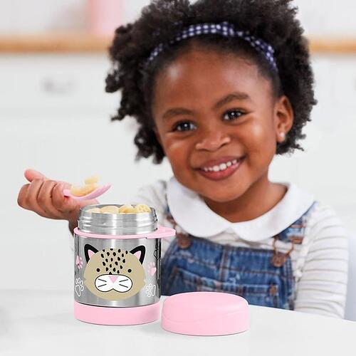 This colorful stainless steel container keeps kid-sized portions warm or cold. Store the spork, or most utensils, in the handy built-in holder so your little one is ready for meals on-the-go.